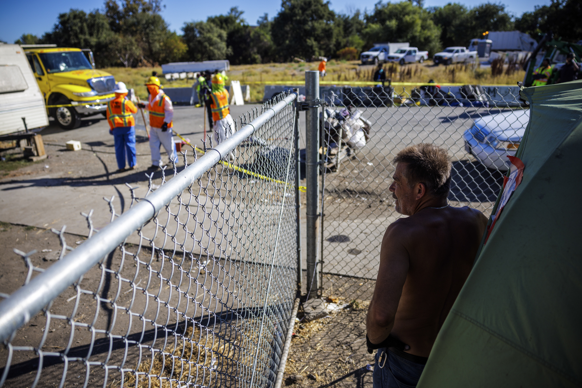 A visitor looks past a barrier at the entrance of Muir Woods National Monument in Marin County, which was temporarily closed as a consequence of the government shutdown on Oct. 1, 2025. (Martin do Nascimento/KQED)Left: Sarah Spillane stands outside the entrance to the DignityMoves tiny home cabins in the SoMa neighborhood of San Francisco on Oct. 1, 2025. Right: Noni Session, executive director of the East Bay Permanent Real Estate Cooperative, stands in front of the Barn next to Esther’s Orbit Room on 7th Street in West Oakland on Oct. 2, 2023. (Gustavo Hernandez/KQED)Hanna Longwell sits in the vanity room at Bimbo’s 365 Club in San Francisco’s North Beach neighborhood on Oct. 8, 2025. She performs as the club’s current “Girl in the Fishbowl,” an act that has been a distinctive part of the venue since it opened in 1931. (Beth LaBerge/KQED)Hanna Longwell performs as the “Girl in the Fishbowl” at Bimbo’s 365 Club on Oct. 8, 2025. (Beth LaBerge/KQED)San Francisco Estuary Institute members Sarah Pearce (left) and Emma Sevier conduct an assessment at a new wetland restoration site at Point Pinole Regional Park in Pinole on Oct. 9, 2025. A recent report found that restored tidal wetlands in San Francisco Bay nearly quadrupled from 2000 to 2025, going against the global trend of wetland loss. (Tâm Vũ/KQED)Windows look out onto the Bay Bridge from the Nimitz House on Yerba Buena Island in San Francisco on Oct. 16, 2025. Built around 1900 as part of the Naval Training Station, the home later served as the residence of Fleet Admiral Chester Nimitz during the final years of his life. (Beth LaBerge/KQED)Left: A demonstrator carries an American flag during the No Kings National Day of Action in Oakland on Oct. 18, 2025. Right: Protestors at the No Kings National Day of Action burn an American flag in Oakland. (Gustavo Hernandez/KQED)The McDonald family sits on their car at a No Kings Day of Action rally in San Francisco. (Beth LaBerge/KQED)Kiddos enjoy Filipino street food during a Late Night DJ party for Filipino American Heritage Month hosted at Seafood City in Daly City on Oct. 18, 2025. (Tâm Vũ/KQED)