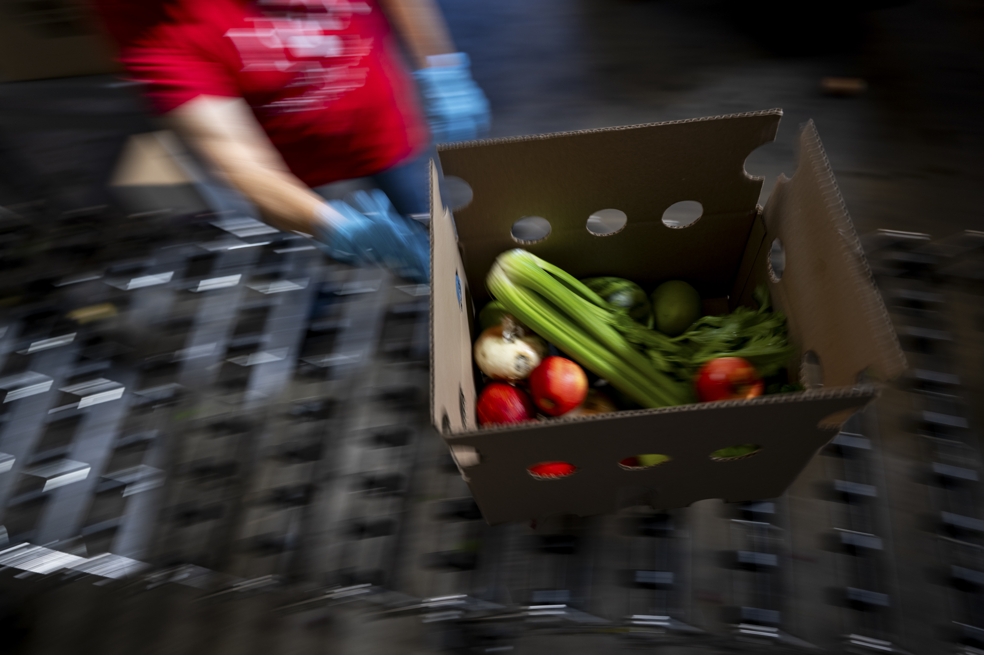 Tour guide William Fontana points visitors to climbers on El Capitan during a tour of the Yosemite Valley in Yosemite National Park in the Sierra Nevada Mountains on Oct. 28, 2025. During the month-long government shutdown, Yosemite remained open, but with a drastically reduced federal workforce. (Beth LaBerge/KQED)Workers sort fresh produce into boxes at the San Francisco‑Marin Food Bank warehouse in San Francisco on Oct. 31, 2025. With the federal government shutdown, Bay Area officials anticipated surges in demand at food banks as thousands stood to loose CalFresh benefits. (Beth LaBerge/KQED)