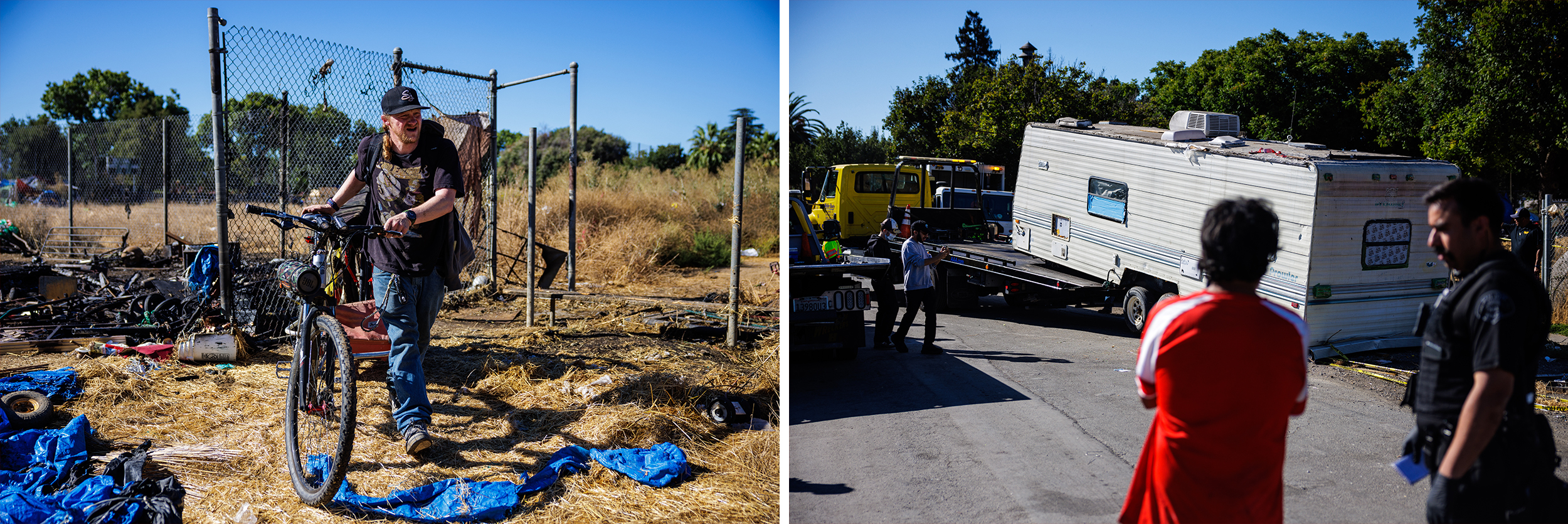 Attendees dance at the Black Futures Ball hosted by The East Oakland Youth Development Center at the Chabot Space and Science Center in Oakland on Aug. 2, 2025. (Tâm Vũ/KQED)Left: Charlene Richardson (left) and Charlette Richardson, also known as The LoveLove Twins, pose for a photo at the Black Futures Ball. Right: Selena Wilson, CEO of the EOYDC, speaks at the Black Futures Ball. (Tâm Vũ/KQED)Francesca Thomas, a Hayward native and great-granddaughter of Leona Alves, owner of Ideal Dining and Miss Alves, a restaurant and nightclub in Russell City, holds a photograph of five generations of her family, from her mother to great-great-great-grandmother, in Hayward on Aug. 6, 2025. Thomas is involved in efforts to preserve the community’s history through the Russell City Reparative Justice Project. (Beth LaBerge/KQED)Protestors hold a banner reading “Stop AI” outside of Scale AI’s San Francisco headquarters on Aug. 6, 2025. Demonstrators oppose the company’s involvement in AI-driven warfare and surveillance. (Gustavo Hernandez/KQED)Cows graze on the hills of Máyyan ‘Ooyákma, Coyote Ridge, a preserve owned by Open Space Authority, in Morgan Hill on Aug. 8, 2025. Wild Boars are an invasive species that endanger native plants, water sources and agriculture in the area. (Tâm Vũ/KQED)A Forestr volunteer picks apples from a Honeycrisp orchard on private property in Martinez on Aug. 12, 2025. The volunteers harvest surplus cherries, peaches, apples and pears — whatever’s in season — from backyard orchards throughout Contra Costa County, donating the rescued fruit to local food pantries and soup kitchens. (Gustavo Hernandez/KQED)Rob Lowe watches as workers clear RVs from Irene Street at Columbus Park in San José on Aug. 18, 2025. The city removed RVs and tents from Columbus Park in North San José, where hundreds of unhoused people have lived for years. (Martin do Nascimento/KQED)Left: Shawn Spencer relocates his belongings from the Columbus Park encampment. Right: Fernando Alcantara watches as his RV is towed at Columbus Park in San José. (Martin do Nascimento/KQED)William Wade, a formerly homeless veteran who was housed through the HUD-Veterans Affairs Supportive Housing program, poses for a portrait at the Laguna Commons supportive housing in Fremont on Aug. 20, 2025. California’s embrace of Housing First principles has become a liability after the president directed federal agencies to stop funding that approach to homelessness. (Tâm Vũ/KQED)Harnesha Burks walks with her son Zyon, 2, near their home in Antioch on Aug. 22, 2025. Burks is among one in three California parents of young kids who struggle to afford their utility bills, according to a statewide survey, which found that when parents have trouble making ends meet, their children’s well-being and development suffer. (Beth LaBerge/KQED)
