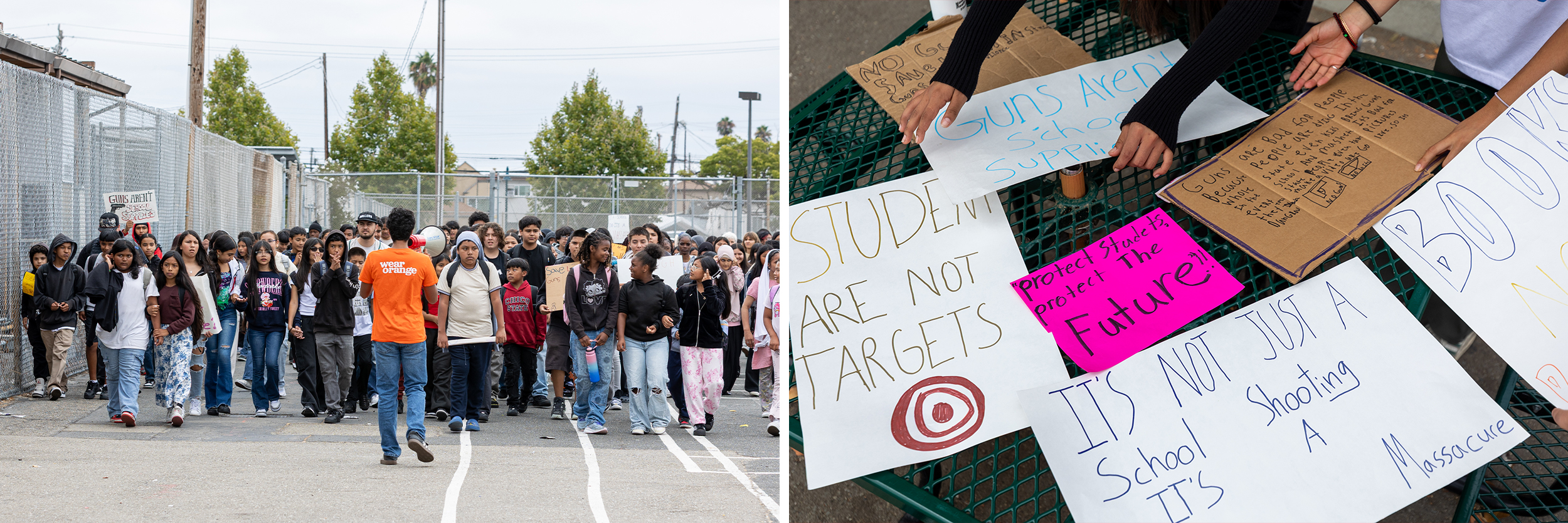 Horetencia M. (left) and Maria E. chant and play buckets as drums as part of the Oakland Sin Fronteras May Day March for Labor & Immigrants in the Fruitvale neighborhood of Oakland on May 1, 2025. (Martin do Nascimento/KQED)Golden State Valkyries’ Monique Billings practices during training camp held at the Sephora Performance Center in Oakland on May 1, 2025. (Beth LaBerge/KQED)Left: The Golden State Valkyries take to the court for their first-ever home opener against the Los Angeles Sparks at Chase Center on May 16, 2025. Right: Golden State Valkyries guard Tiffany Hayes (15) drives to the hoop against the Los Angeles Sparks. (Beth LaBerge/KQED)Benicia mayor Steve Young drives by the Valero Benicia Refinery in Benicia on May 8, 2025, which processes up to 170,000 barrels of oil a day, making gasoline, diesel, and other fuels for California. Valero planned to shut down the Benicia refinery by April 2026, citing high costs and strict environmental rules. (Beth LaBerge/KQED)Left: Nests of California gull eggs are tucked in the grass near the Dumbarton Bridge in Fremont on May 12, 2025. Right: A team led by Nathan Van Schmidt (right), science director at the San Francisco Bay Bird Observatory, and Amy Parsons, lead biologist, conducts a California gull nest survey. (Beth LaBerge/KQED)Nesting California gulls circle overhead during a nest survey conducted by the San Francisco Bay Bird Observatory near the Dumbarton Bridge in Fremont on May 12, 2025. (Beth LaBerge/KQED)The intersection of Highway 12 and Highway 113 in Solano County outside of Suisun City on May 13, 2025. The California Forever project is seeking to have Suisun City annex the land where the company has proposed building a new city in order to move forward with its plans, nearly a year after pulling an initiative seeking voter approval for the project. (Beth LaBerge/KQED)Left: Resident Letty Guzman sits on her bed with her dog Pappa in her room at Horizon Community Village at the Capri Motel on University Avenue in Berkeley on May 20, 2025. The site, operated by Dorothy Day House, provides transitional housing and supportive services for unhoused individuals in Berkeley. Right: Maximo Hernandez Perez stands in front of his home in Stockton on May 22, 2025. Perez and his daughter, Celina, then 14 years old, were detained and separated after crossing the border in 2017. (Beth LaBerge/KQED; Martin do Nascimento/KQED)Valentina Stone, 14, gets ready for a school dance with the help of her mother, a correctional officer, at their home in the mobile home community next to the now-closed Federal Correctional Institution, Dublin, on May 30, 2025. When FCI Dublin abruptly shut down after years of turmoil, residents of the community were given eviction notices and were ordered to remove their homes from the government’s land by September, according to a union representative. (Beth LaBerge/KQED)Fearful of what he’d face if forced to leave the encampment, Travis Smith gets emotional at the homeless encampment at Ohlone Park in Berkeley on May 29, 2025. (Gina Castro/KQED)