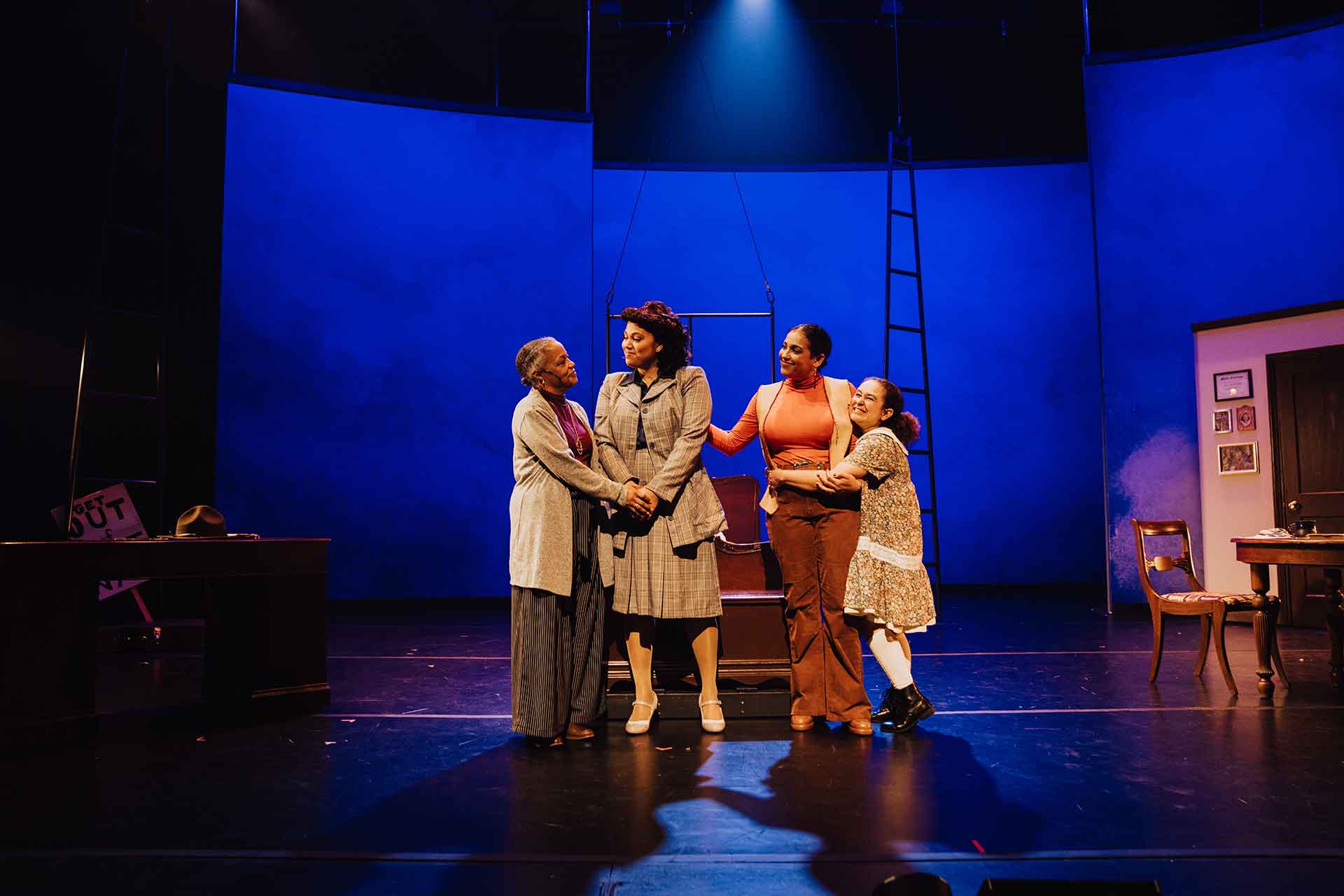 The four performers portraying Betty Reid Soskin in the stage play Sign My Name to Freedom — from left, Cathleen Riddley, Aidaa Peerzada, Lucca Troutman and Tierra Allen — each represent a different period of Soskin’s life, drawn from her memoir and lifelong work documenting Black history, music and activism. (Photo by Alexa 'LexMex' Treviño)