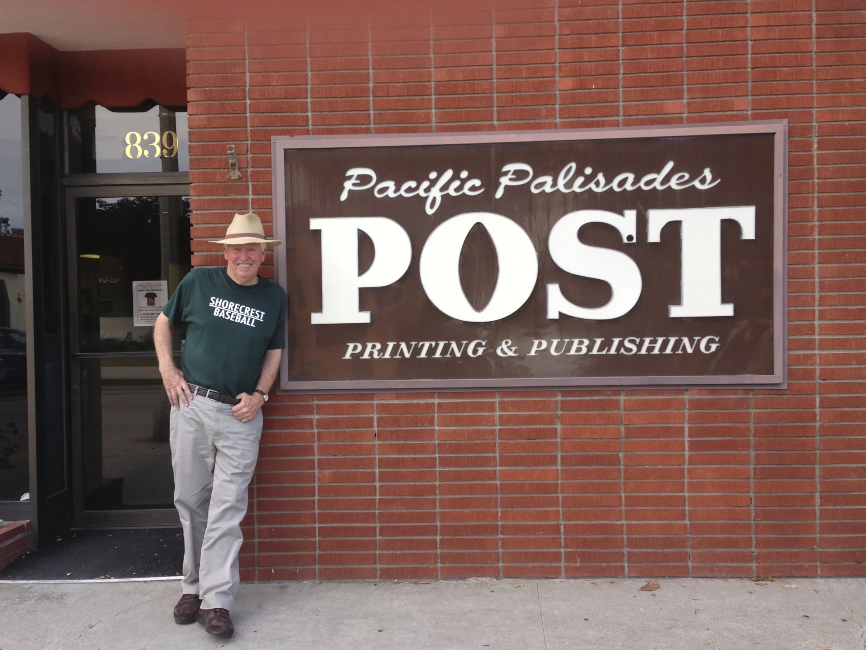 Former Pali-Post editor Bill Bruns stands in front of the old "Pacific Palisades Post" building on Via de la Paz. The building held the newsroom as well as the paper's printing press.