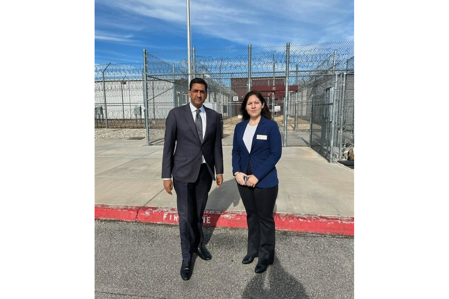 South Bay Democrat Rep. Ro Khanna and his staff member, Yvonne Inciarte, stand outside of the ICE California City Detention Center on Jan. 5, 2025. (Courtesy Ro Khanna's office)