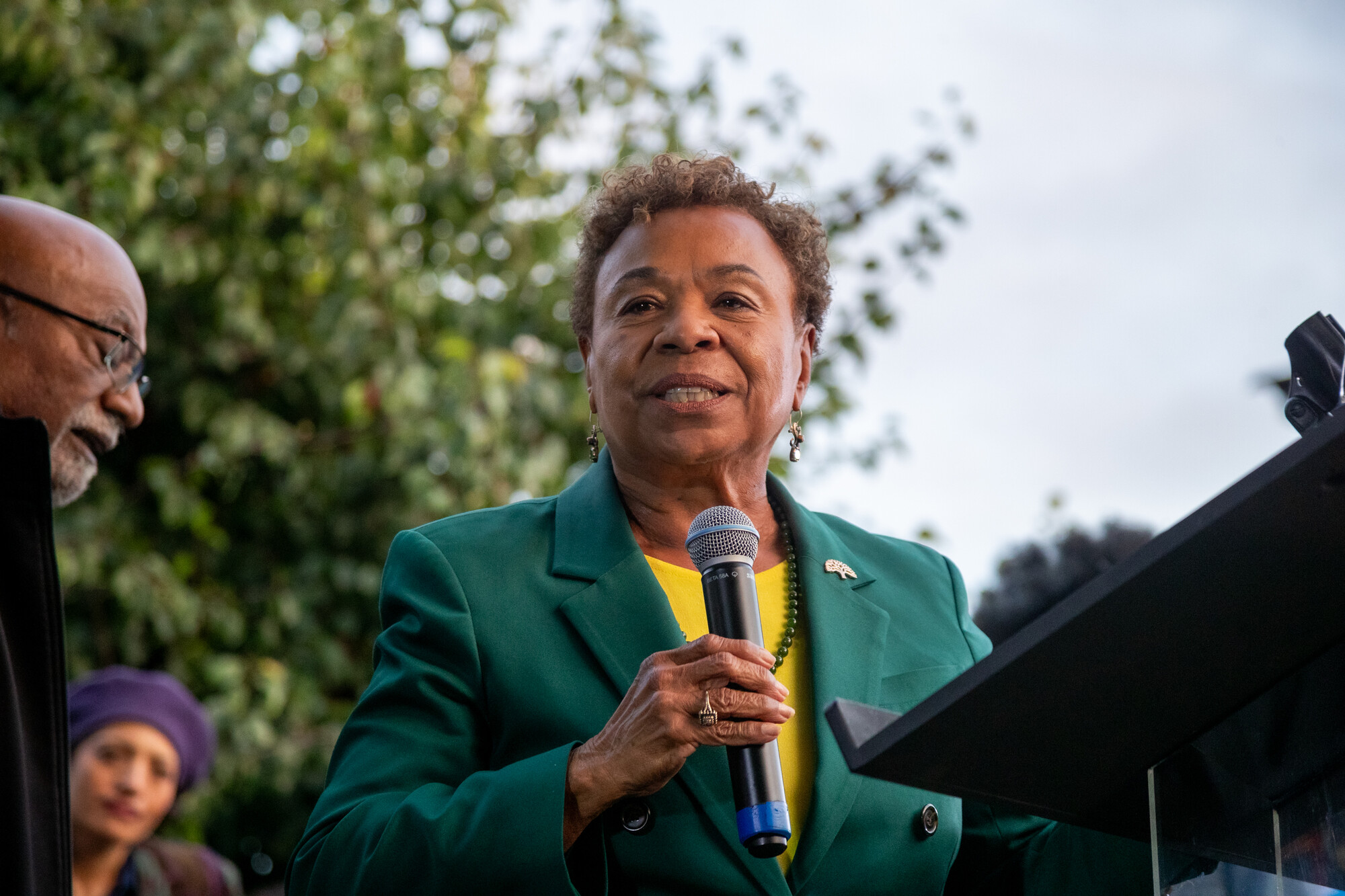 Oakland Mayor Barbara Lee speaks in Oakland, California on Oct. 22, 2025. Lee announced on Wednesday that close to $1 million in private funding will provide mentorship and paid, part-time work, to prepare college students for the Police Academy or other public safety jobs.