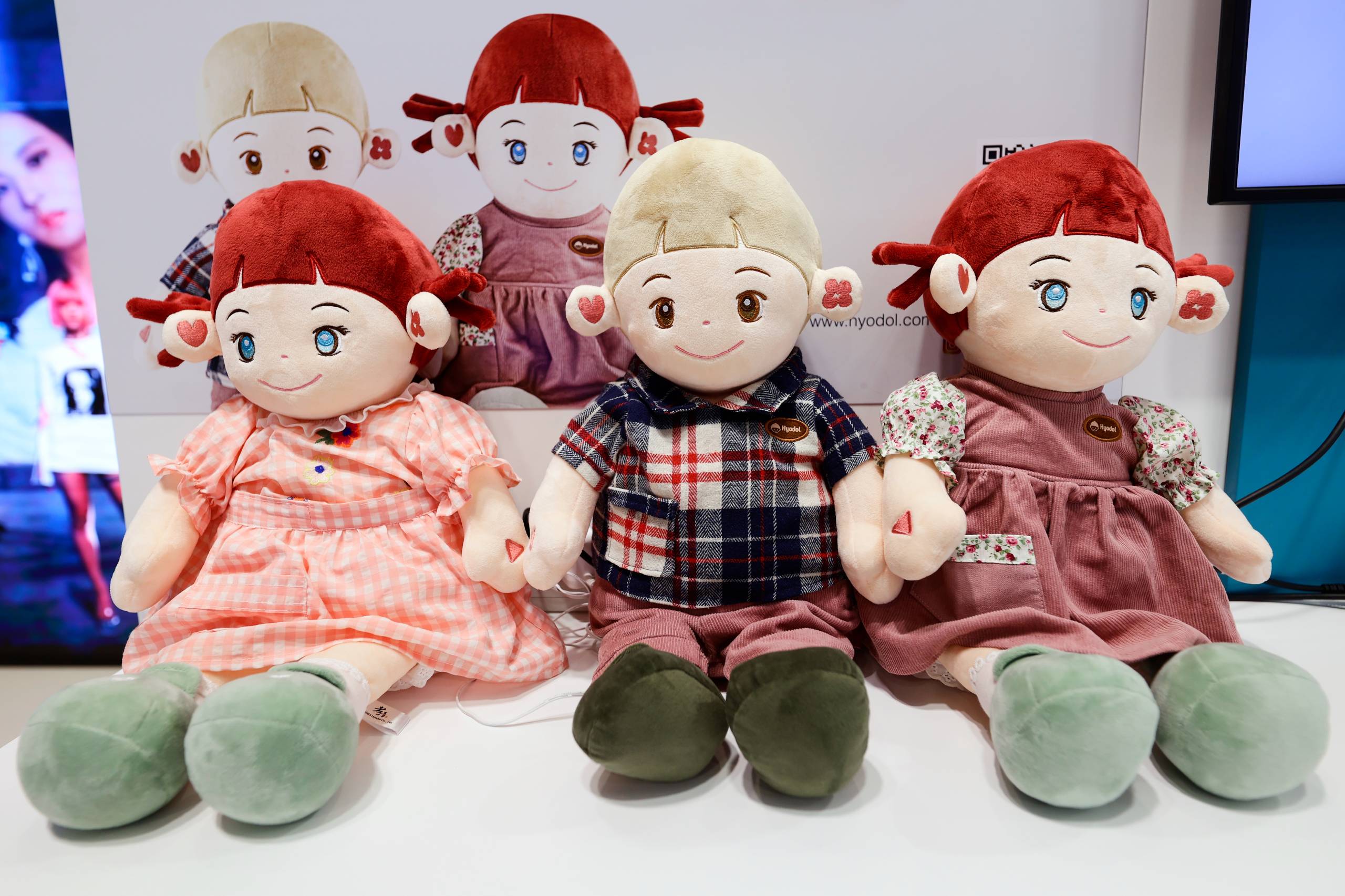 Hyodol, the world’s first AI-based companion robot dolls, are being exhibited in the South Korean pavilion at the Mobile World Congress 2024 in Barcelona, Spain, on April 2, 2024. Created by a South Korean company, these dolls are designed to serve as social companions for the elderly and have been commercialized in several countries.