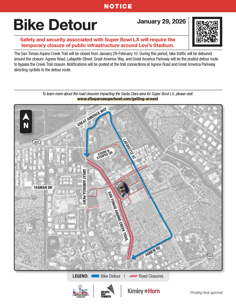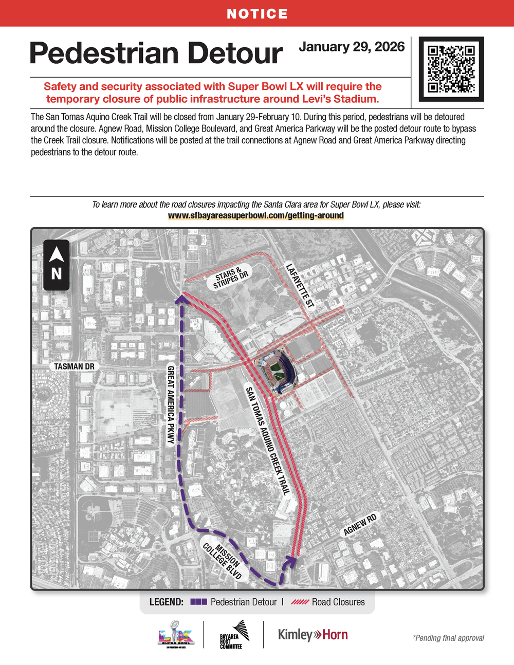 But even if you don’t intend to be anywhere near Levi’s Stadium itself on Super Bowl Sunday, the big game — which will draw an estimated 90,000 fans to the Bay, according to the Bay Area Host Committee — will mean not just heavier traffic on the region’s roads overall, but a score of road closures and detours in Santa Clara that have already begun ahead of Super Bowl LX.