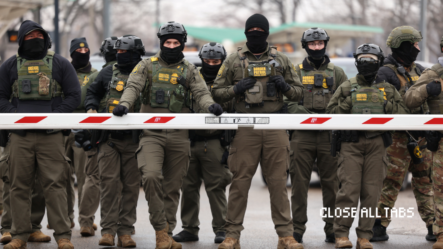Agentes de la Patrulla Fronteriza de EE. UU. montan guardia en el edificio federal Bishop Henry Whipple en Minneapolis, Minnesota, el 8 de enero de 2026. Un agente del Servicio de Inmigración y Control de Aduanas de EE. UU. (ICE) disparó y mató a una mujer estadounidense, Renée Nicole Good, en las calles de Minneapolis el 7 de enero. (Charly Triballeau/AFP a través de Getty Images)