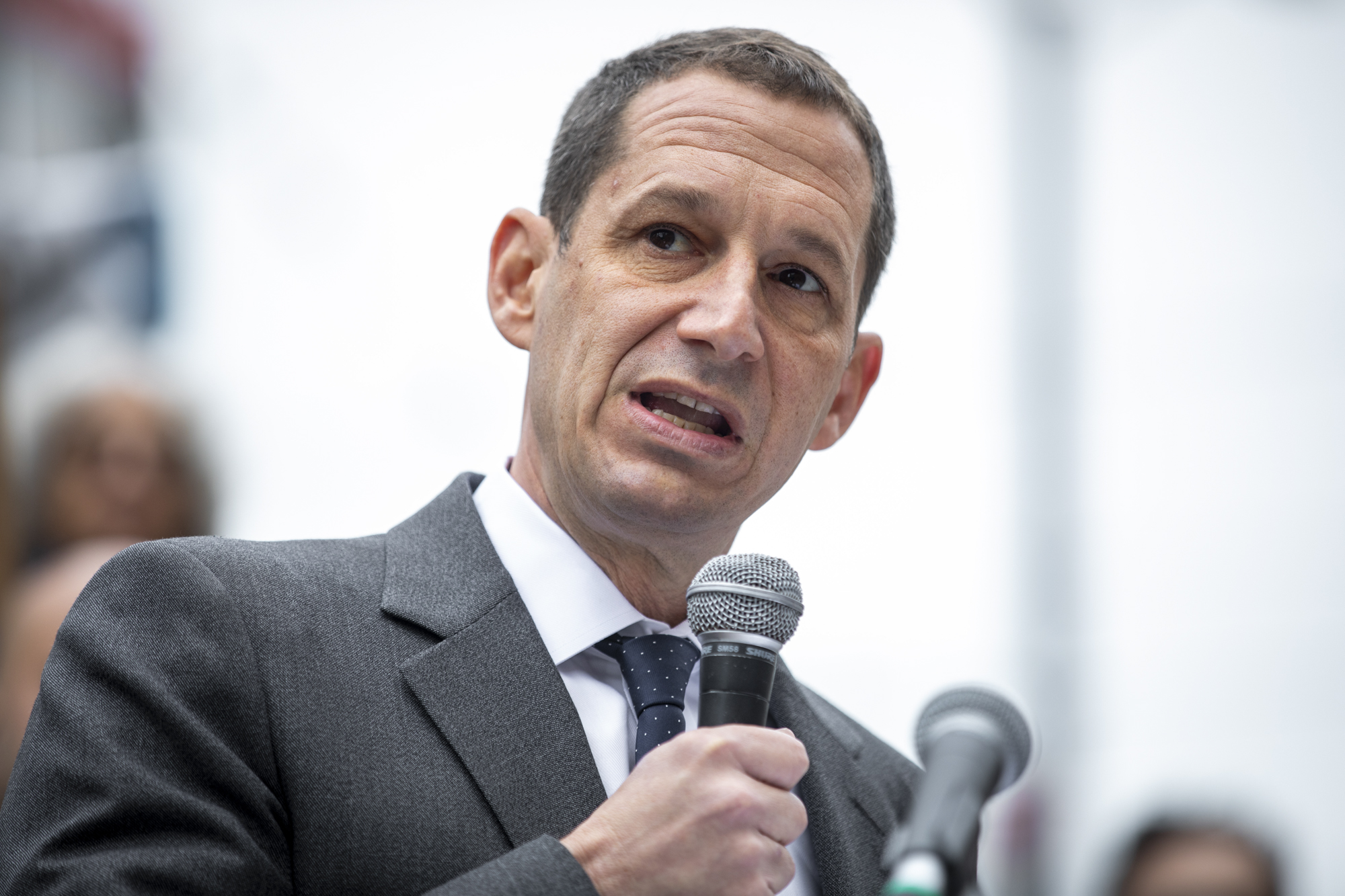 Mayor Daniel Lurie speaks at a press conference at Embarcadero Plaza in San Francisco on Jan. 23, 2026. (Tâm Vũ/KQED)
