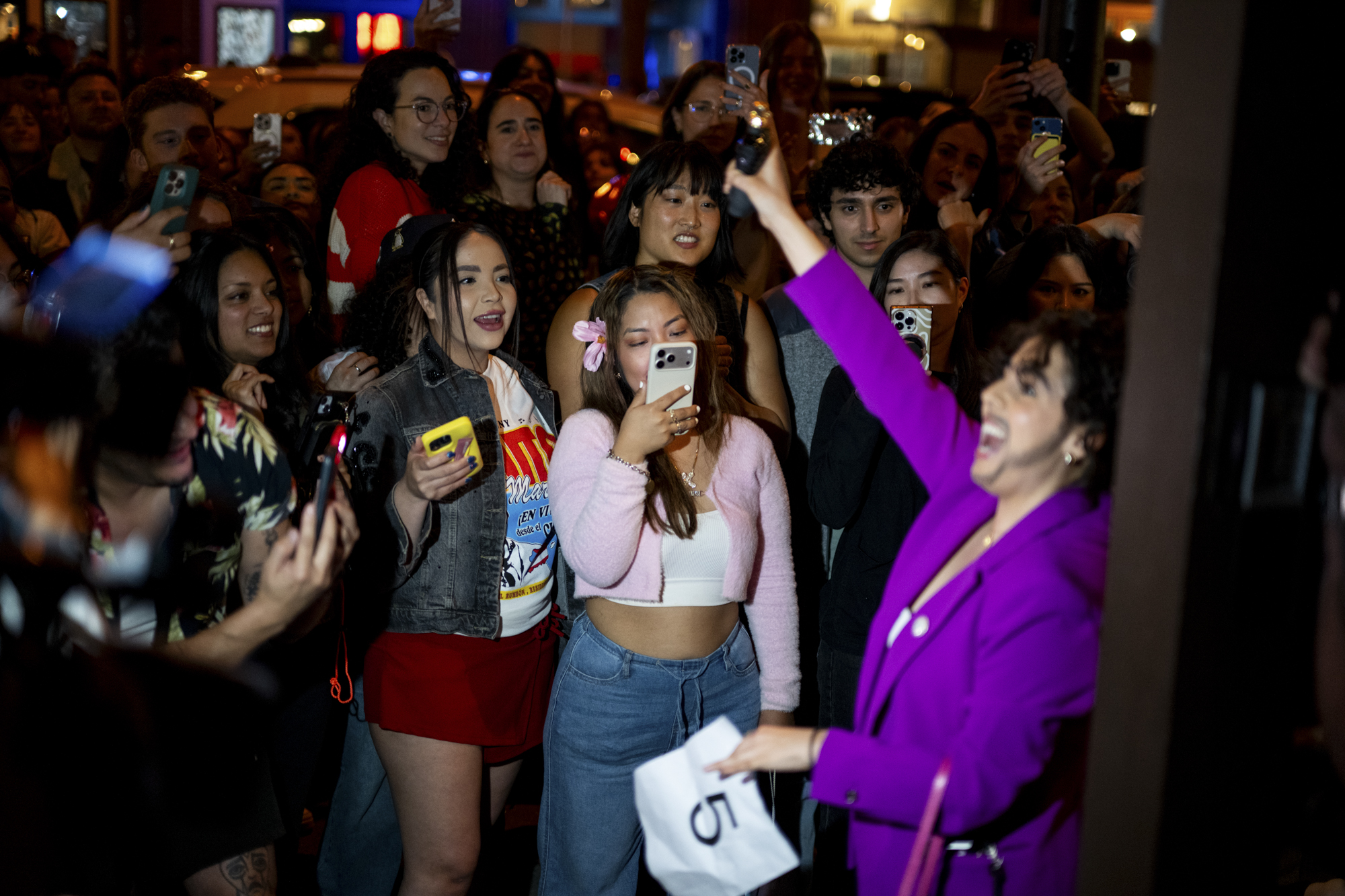 The event drew hundreds of fans, so packed that organizers expanded the party out onto the sidewalk, where a DJ played Bad Bunny’s most popular hits and the crowd danced along.