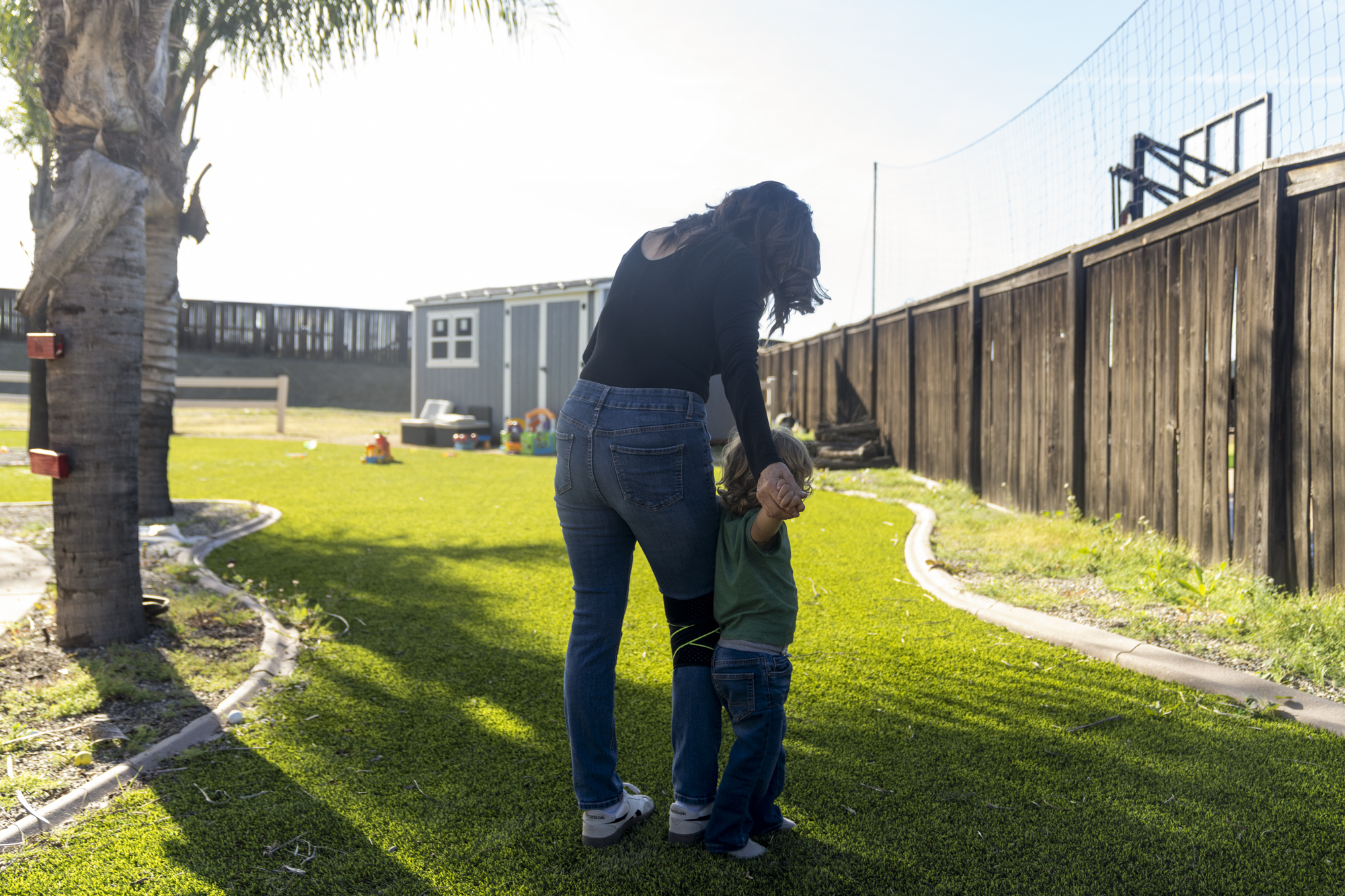 Carrie Esqueda plays with one of her grandkids at her home in Wildomar on Feb. 9, 2026. A growing number of patients are experiencing delays in care as a labor conflict intensifies at Kaiser, rippling across California and Hawaii, with no contract deal in sight. (Lauren Justice for KQED)