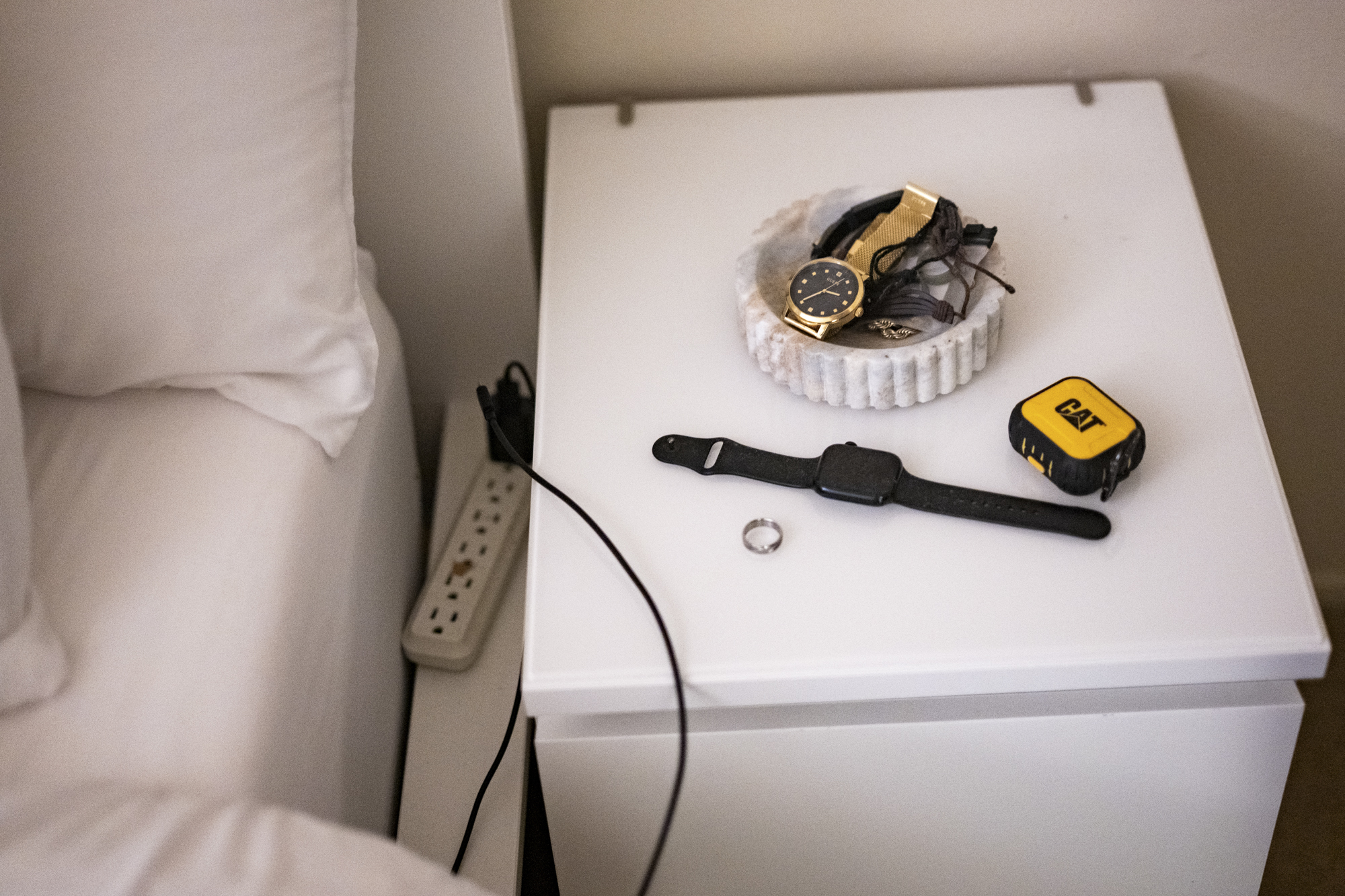 Aby Peña leaves her husband’s belongings as he left them at their home in Sunnyvale on Feb. 19, 2026. Her husband, Ulises Peña Lopez, was deported to Mexico after being taken into ICE custody outside their home in February 2025, leaving his wife and young daughter in the Bay Area. (Beth LaBerge/KQED)
