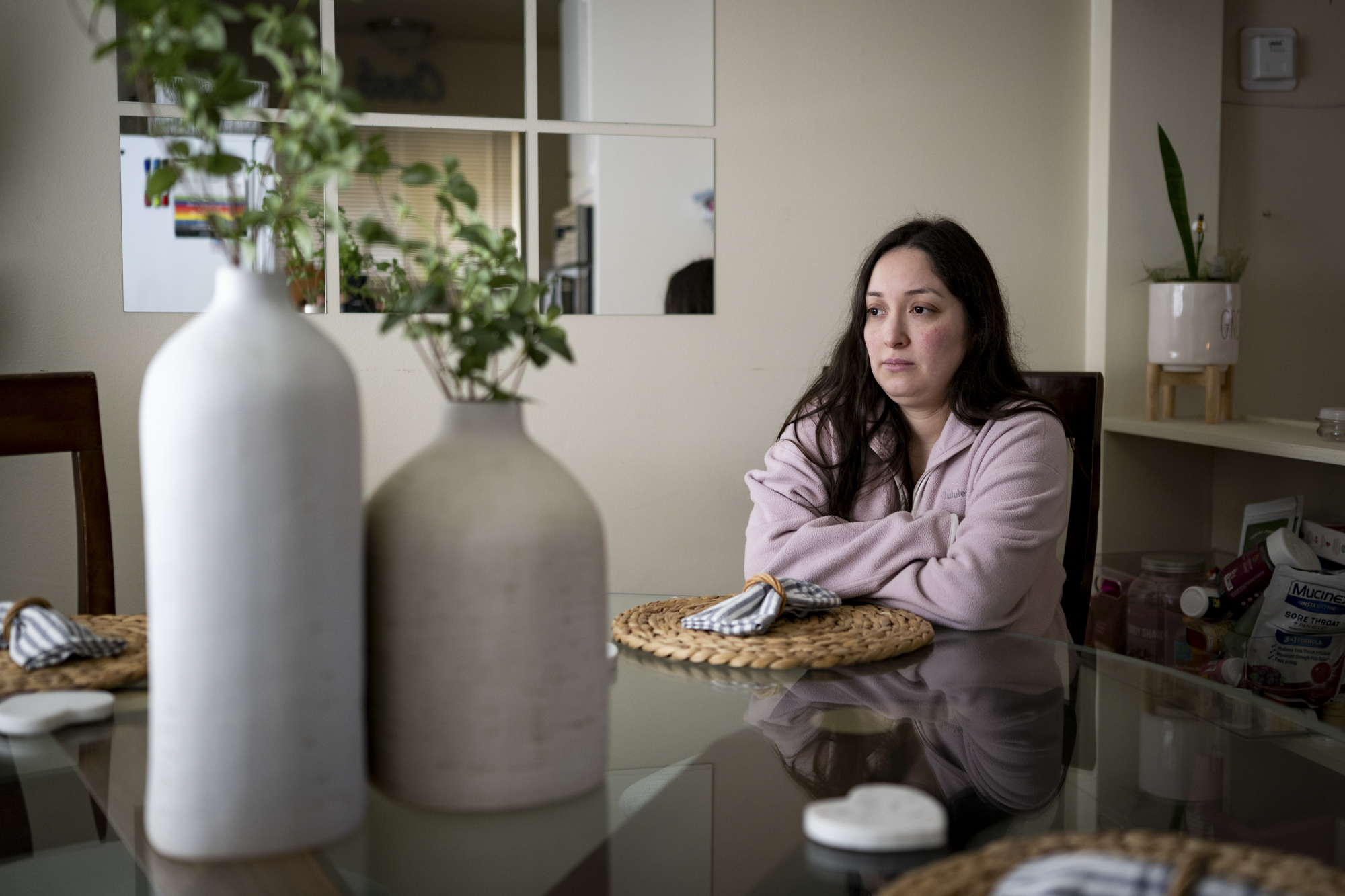 Aby Peña sits in the kitchen at her home in Sunnyvale on Feb. 19, 2026. (Beth LaBerge/KQED)