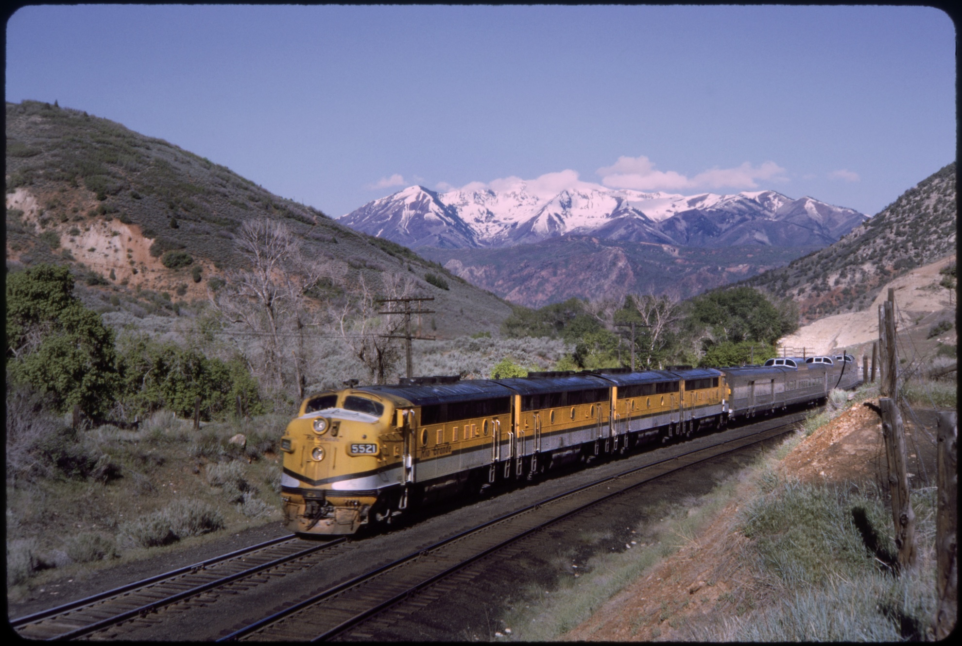 California Zephyr Train with Snow-Capped Mountains in Utah, USA, 1964. (GHI/Universal History Archive via Getty Images)