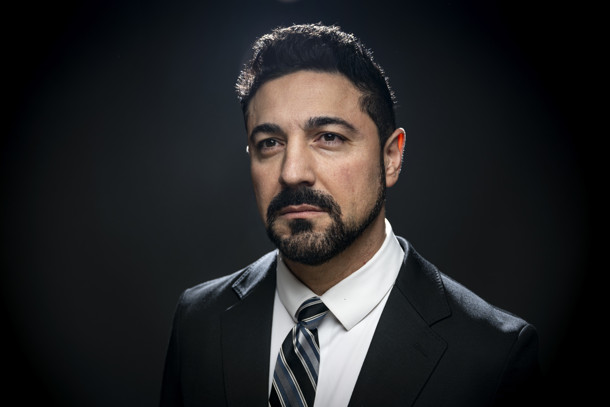 Vincent Salimi, former mayor of Pinole, at the KQED offices in San Francisco on March 4, 2026. Salimi said he acknowledges Iranian Americans’ varied reactions to the emerging war in Iran, but is ultimately “relieved.” (Beth LaBerge/KQED)