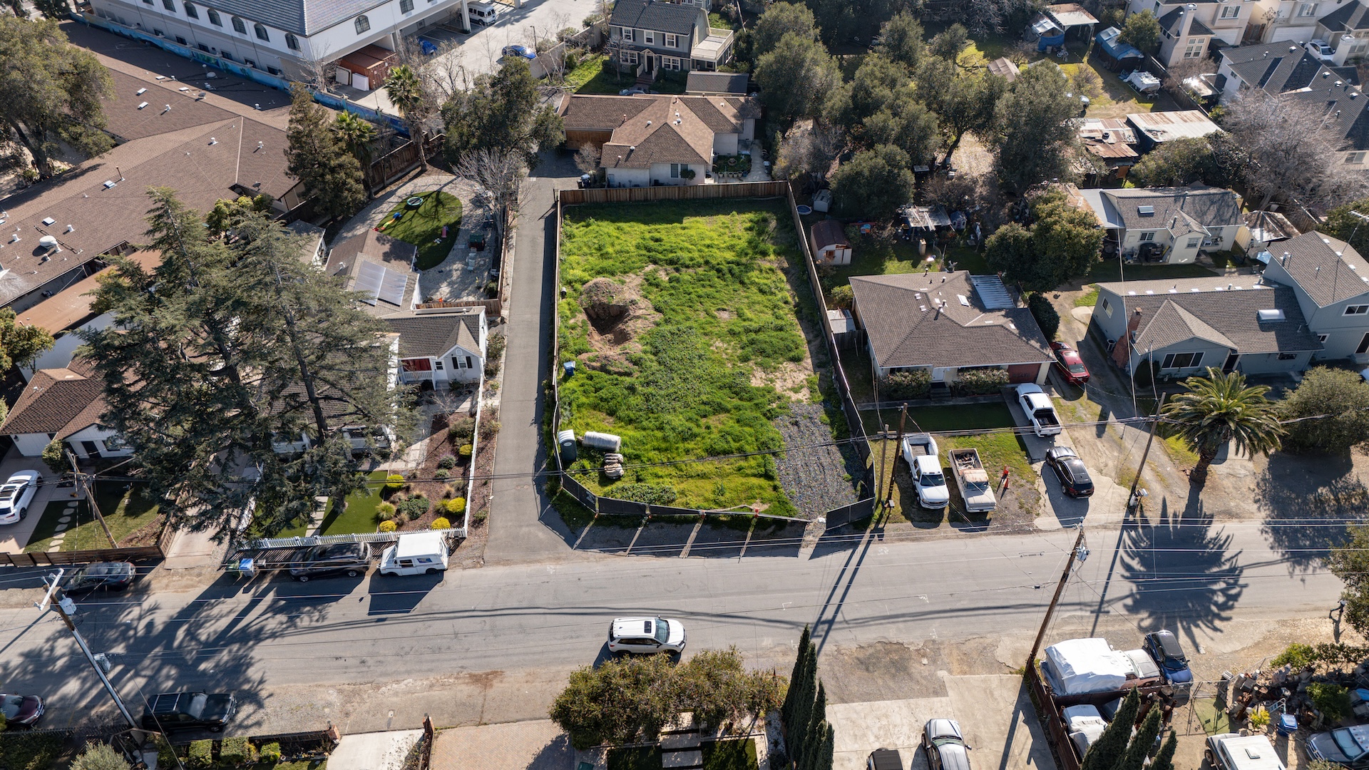 The lot at 300 Redding Road in Campbell, where the Mercury Lane Townhomes will be built. Construction broke ground on Friday, March 6, 2026. (Courtesy of AlphaX RE Capital)