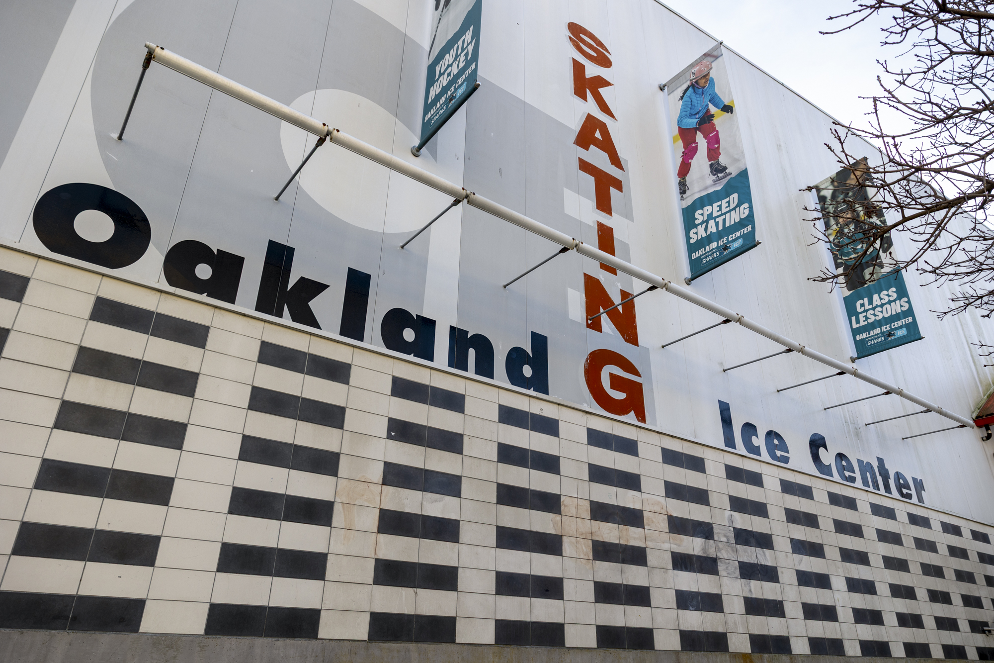 The exterior of the Oakland Ice Center on March 10, 2026, in Oakland. The rink is where Olympic gold medalist Alysa Liu trained for years as a young skater. (Gustavo Hernandez/KQED)