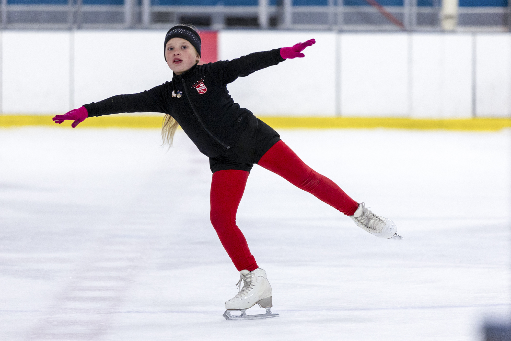 Haya Marie Hayes practices during a skating session on March 10, 2026, at the Oakland Ice Center in Oakland. As the Bay Area celebrates Olympian Alysa Liu's homecoming, young skaters at Oakland’s Ice Center dream of following her path. (Gustavo Hernandez/KQED)