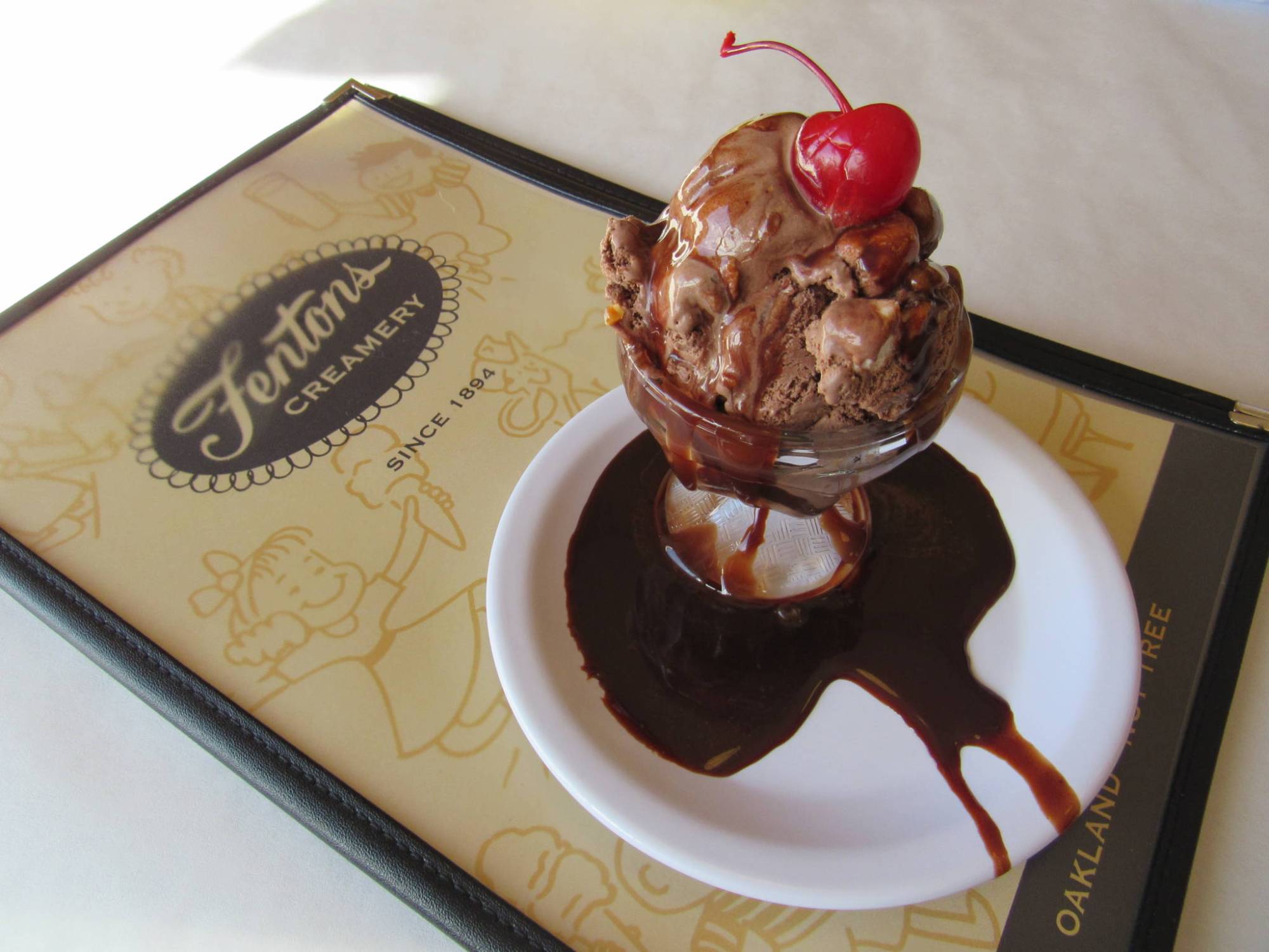 A Fenton’s Rocky Road sundae. Fenton’s Creamery has not done much to advertise its claim to Rocky Road, although it does mention it on the menu. (Suzie Racho/KQED)