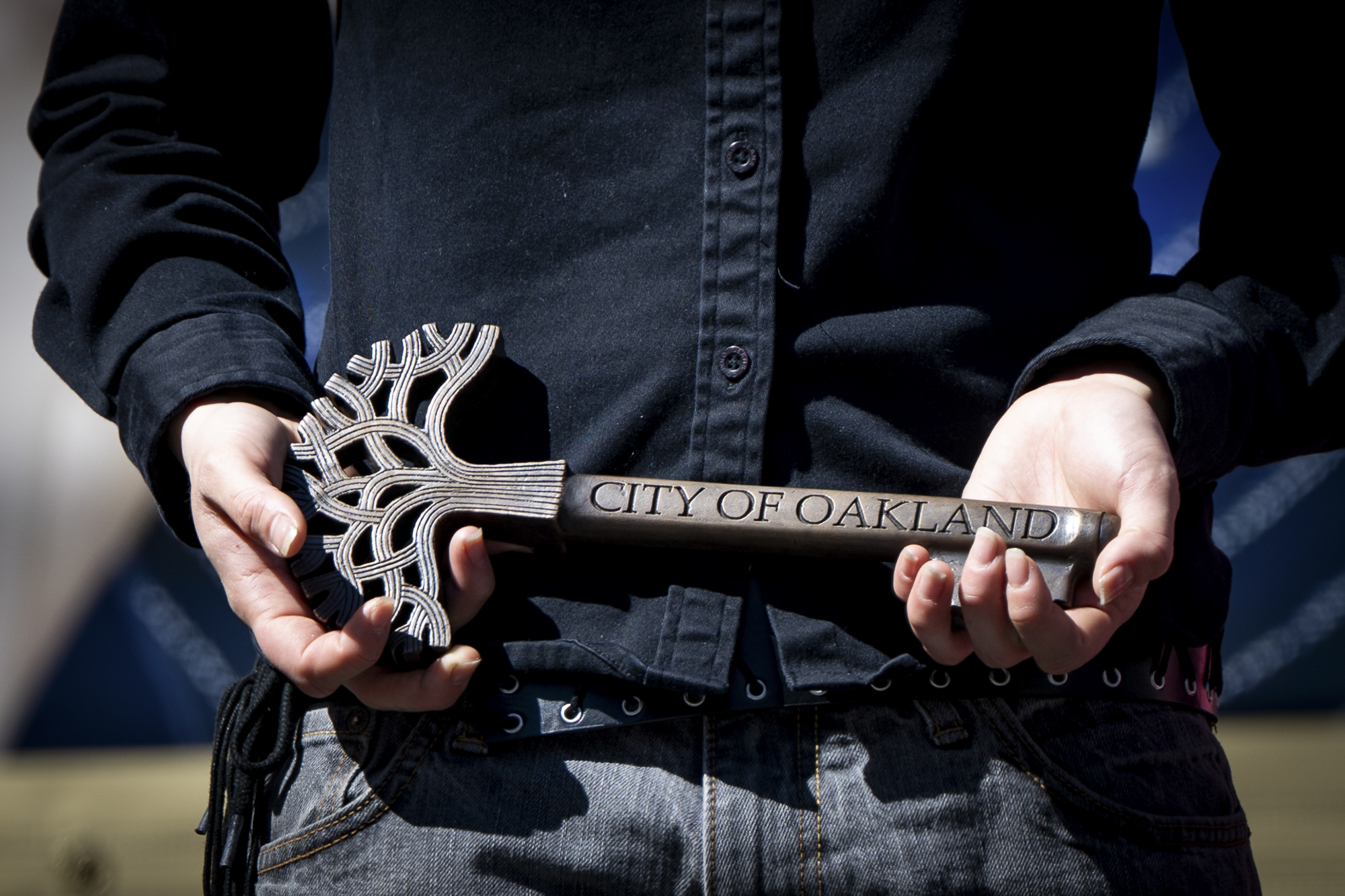 Fans erupted in cheers when Liu took the stage just after noon, and Oakland Mayor Barbara Lee presented the figure skater with an oversized key to the city.