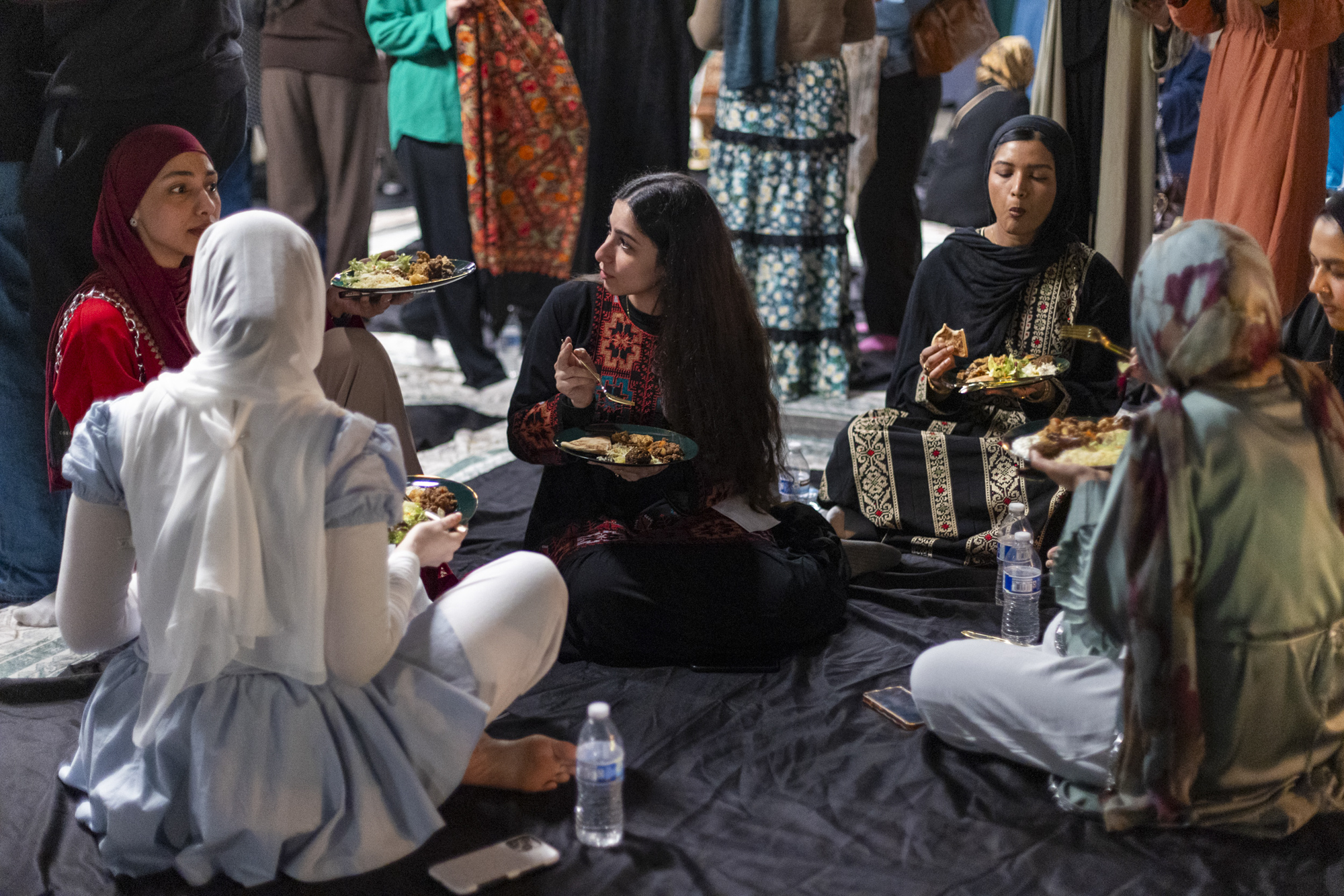 Nora Hany eats her iftar dinner, the second meal of the day during Ramadan, with her friends in San Francisco on March 1, 2026. Iftar dinners during Ramadan are used as a vehicle for charity and activism. (Tâm Vũ/KQED)