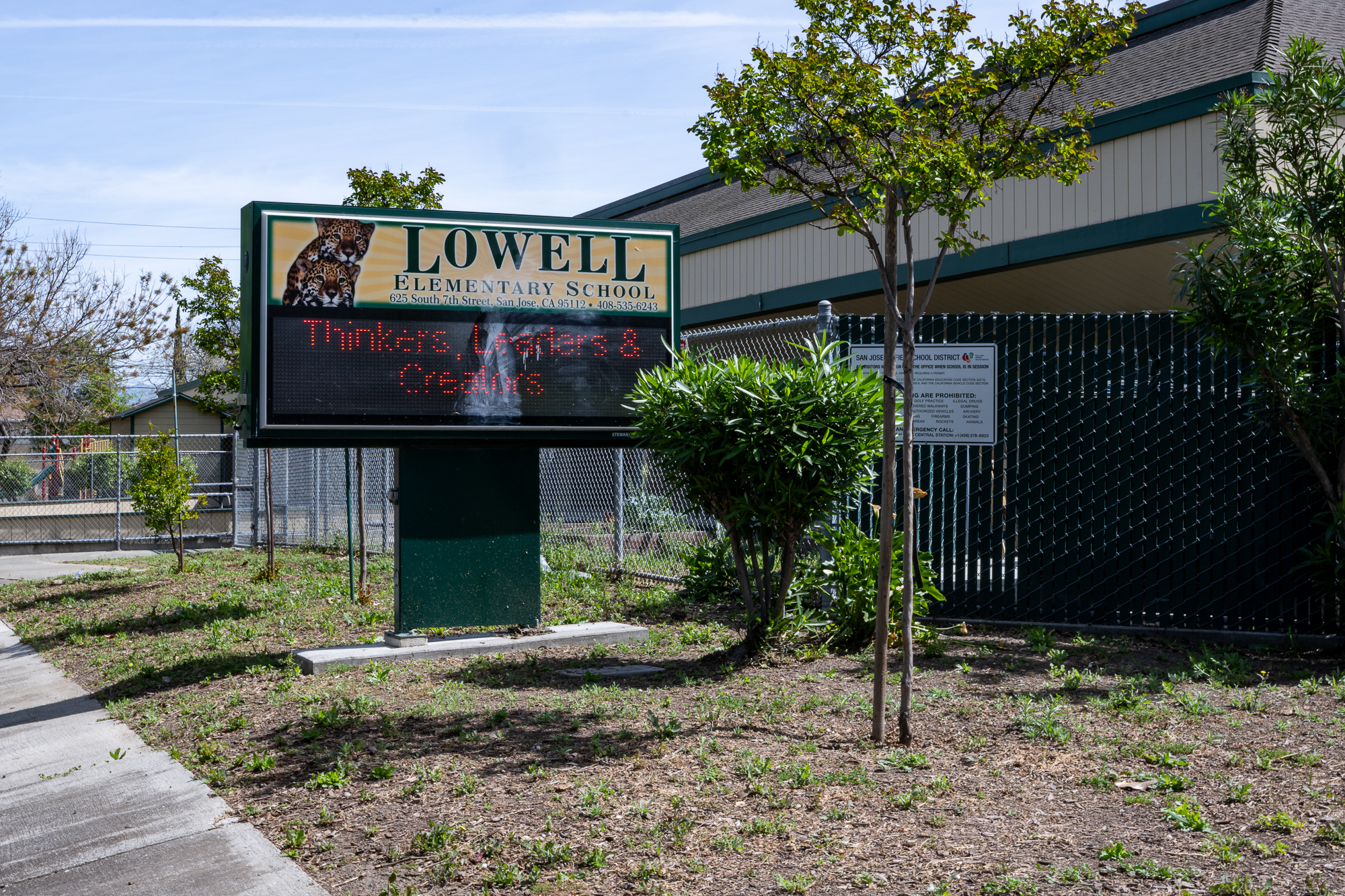 Lowell Elementary School in San José on March 26, 2026. The school is among those proposed for closure as part of the San José Unified School District’s “Schools of Tomorrow” plan. (Beth LaBerge/KQED)