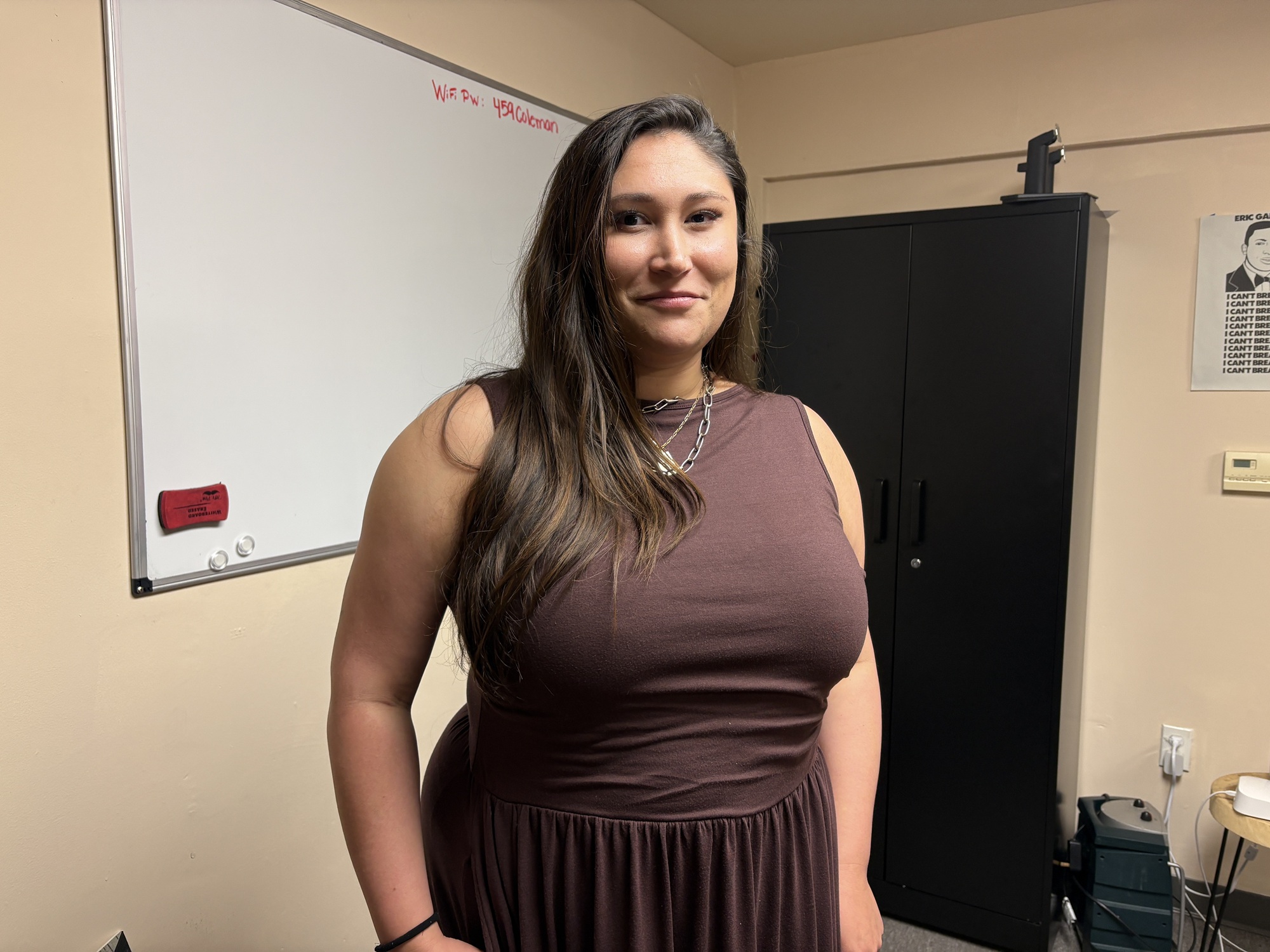 San Francisco resident Brielle Pajares on March 25, 2026. Pajares left an abusive relationship in 2023, and has struggled with obtaining a restraining order and advocating for more legal aid for survivors. Advocates are demanding that the city fund Proposition D, which San Francisco voters approved in 2022, to create a right-to-counsel program for survivors of domestic violence.