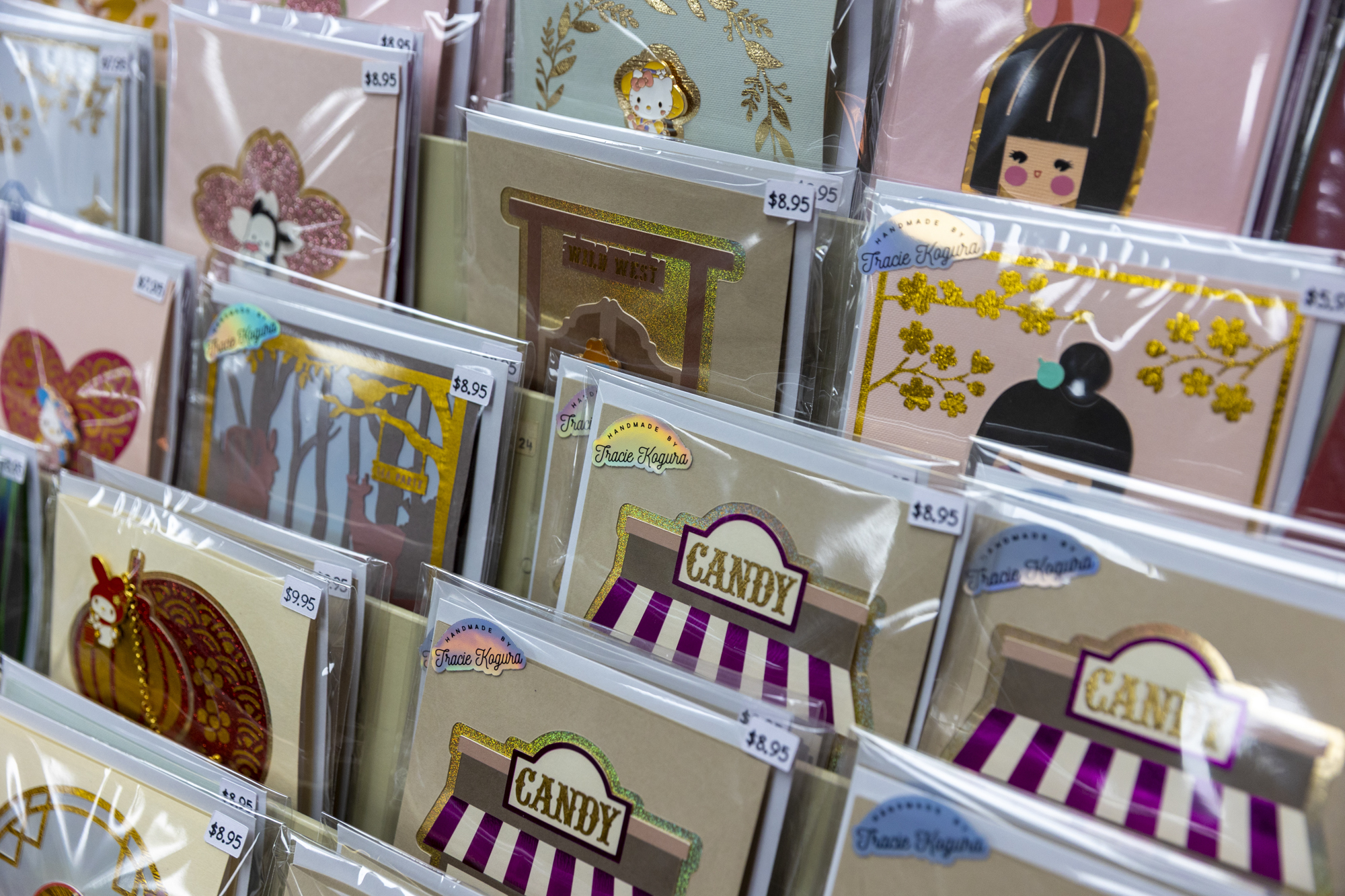Cards made by Tracie Kogura, Richard Kogura’s daughter, are sold at Kogura Company in San José on March 20, 2026. (Tâm Vũ/KQED)