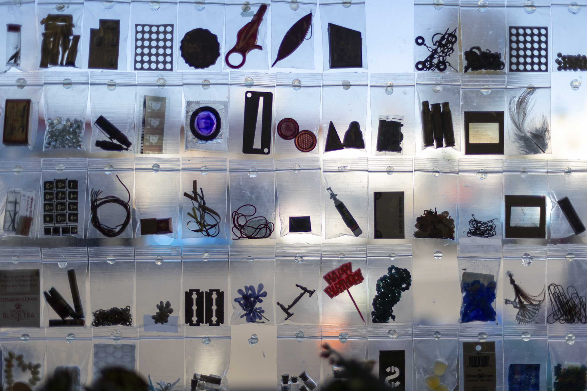 The space resembled a grandmother’s attic, crowded with mismatched objects: glassware stacked beside old electronics, knitted hats next to typewriters and rotary phones.