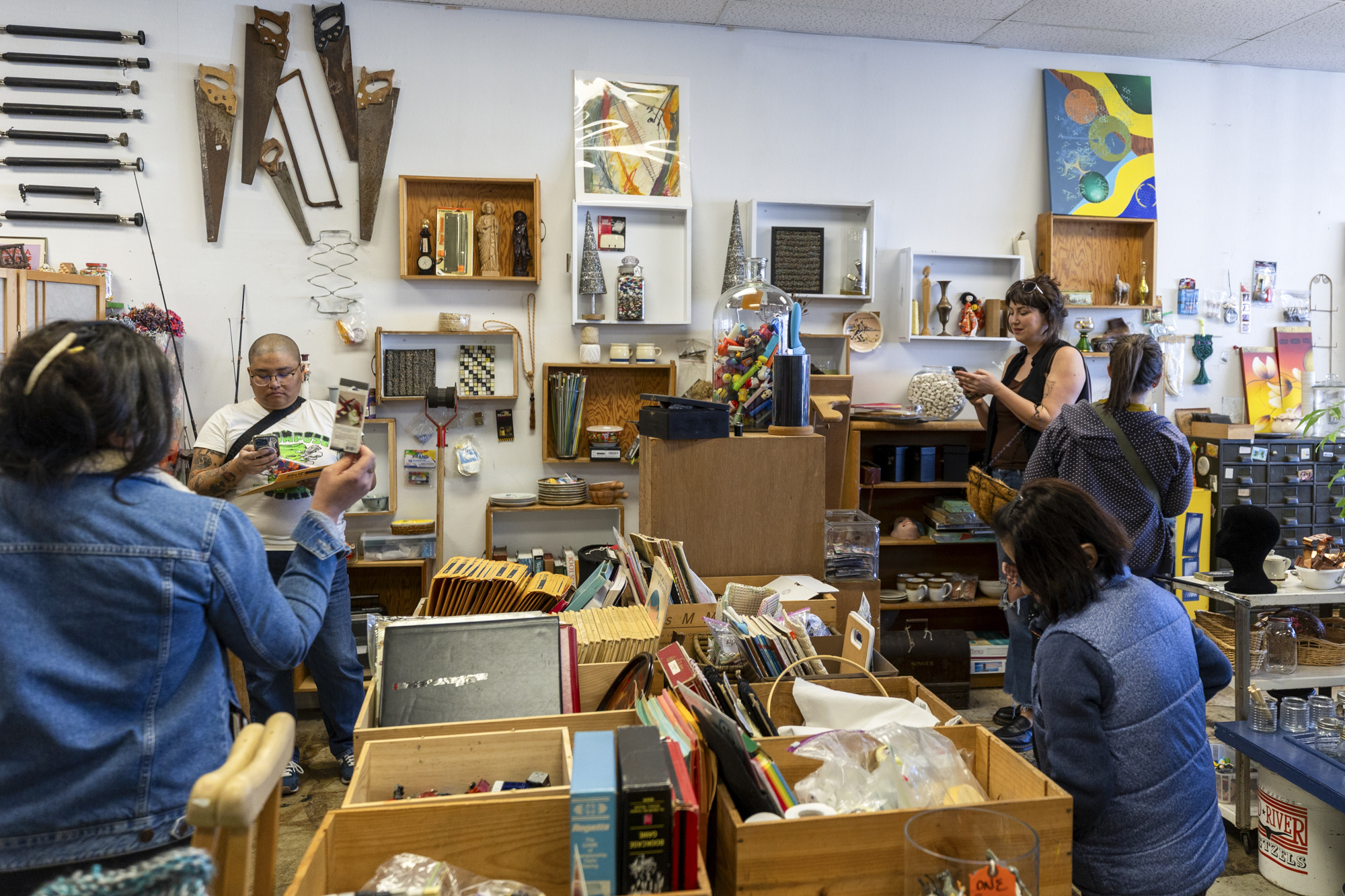 On a recent Saturday afternoon, people moved shoulder to shoulder through a small shop in East Oakland, pausing at tables, lifting objects, and deciding what to take with them.