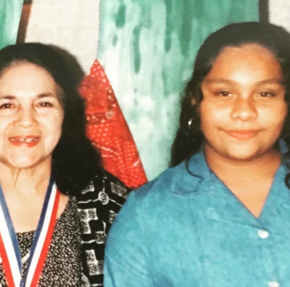Victoria Duran (R), meeting legendary labor organized and UFW co-founder Dolores Huerta (L), in 1995. (Victoria Duran)