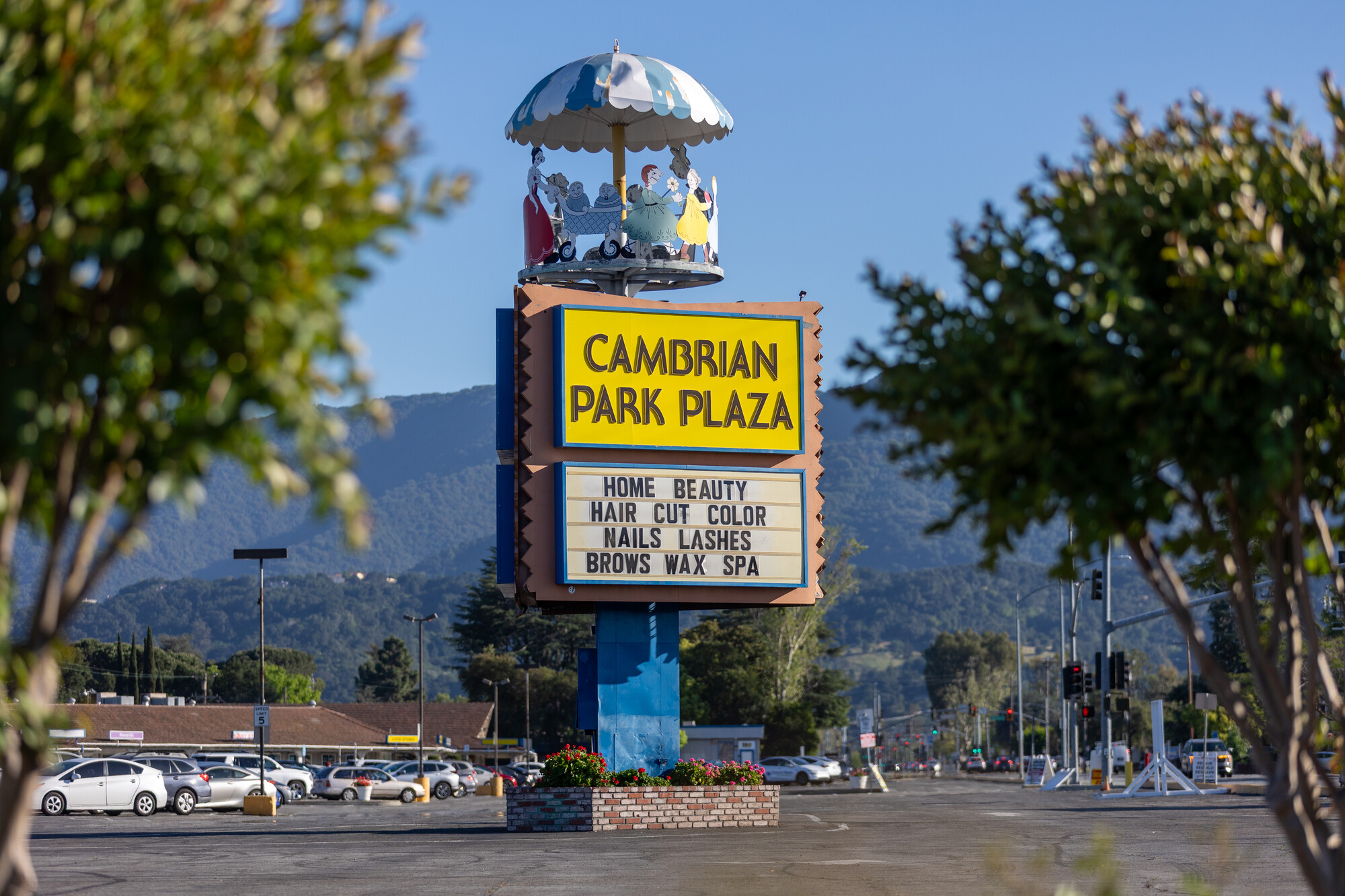 The first thing a lot of people notice about Cambrian Park Plaza on the west side of San José is the sign.