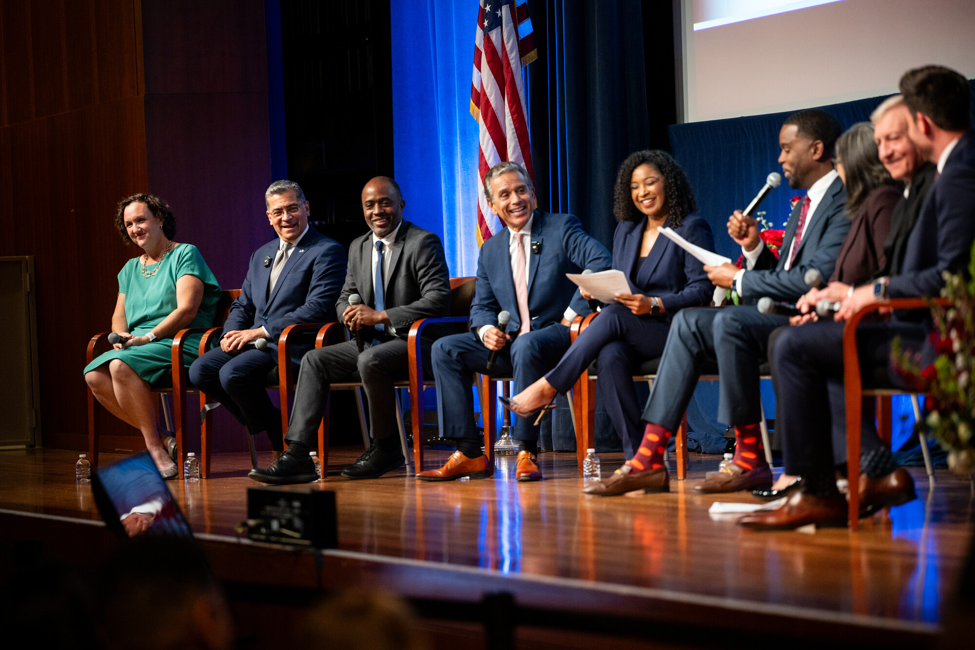 A state gubernatorial candidate forum at the UCSF Mission Bay campus in San Francisco on Jan. 26, 2026. Leading gubernatorial candidates Chad Bianco, Steve Hilton, Katie Porter and Tom Steyer can’t agree on who should pay more or less. Here’s where they stand. (Beth LaBerge/KQED)