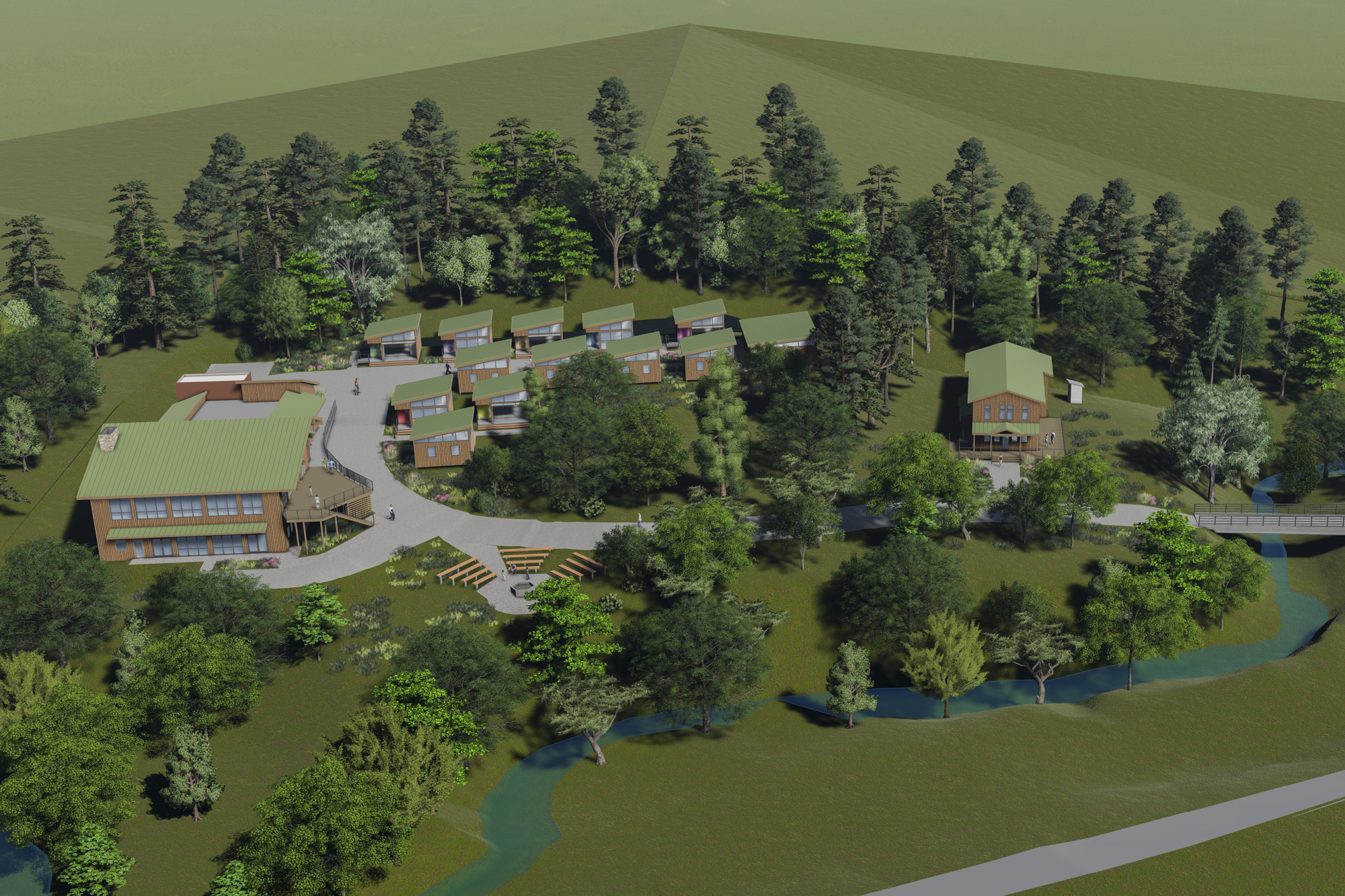 This rendering shows plans for the Mosaic Project's proposed permanent home in Alameda County, which it hopes will serve up to 100 students per week, for about 130 days out of the year at a proposed new permanent facility in Castro Valley. The Alameda County Board of Supervisors is expected to vote Thursday to decide the fate of the project. (Courtesy of the Mosaic Project)