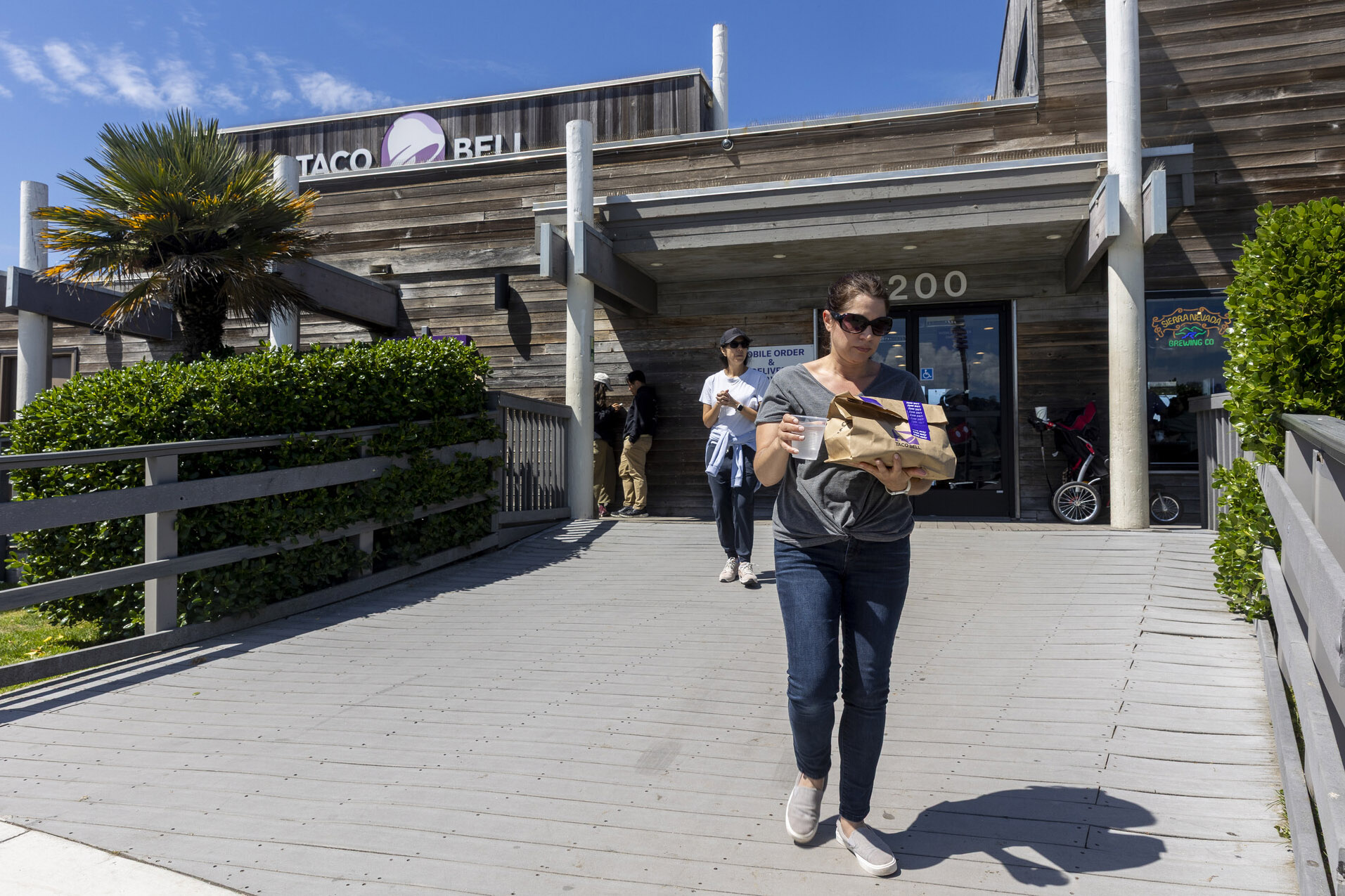 Gabriela Glueck: Even on a weekday afternoon, the Taco Bell is packed. There are people waiting to place their orders on the self-service tablets, kids munching tacos and groups hanging out on the back deck enjoying 32 ounce slushy margaritas out of novelty cups.