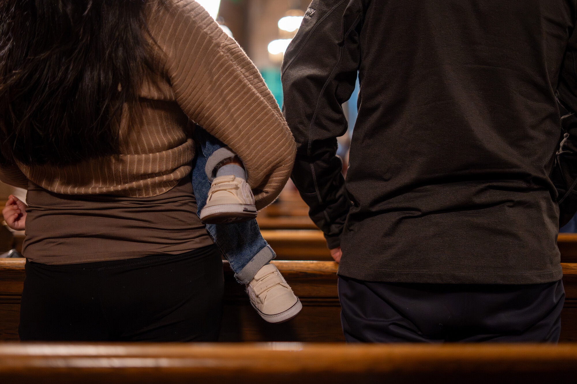 A family attends Mass at St. Jarlath’s Church in Oakland during a vigil for immigrant families on Oct. 28, 2025. A state civil rights agency said the proposed change to the U.S. housing assistance policy would force families with mixed-immigration status to choose between facing eviction or separation from their loved ones.