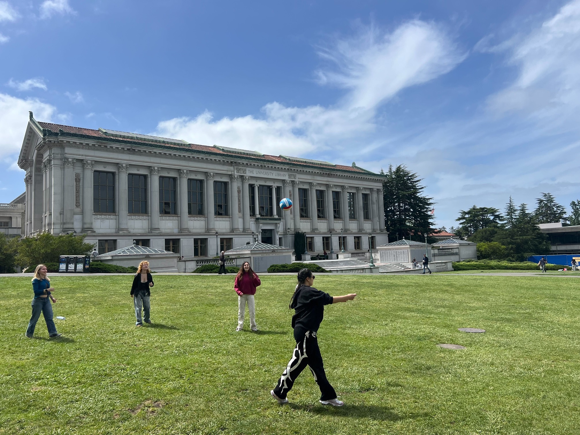 On a sunny Friday afternoon at Memorial Glade, the center of UC Berkeley’s campus, students set up volleyball nets, cornhole, picnic blankets and a makeshift plywood stage for live music.