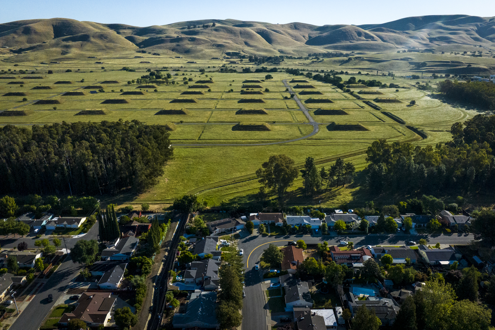 Olivia Allen-Price: I’m Olivia Allen-Price. On today’s episode, we asked KQED’s Pauline Bartolone to scout out that area behind Concord High School. What are those grassy mounds in a grid pattern?