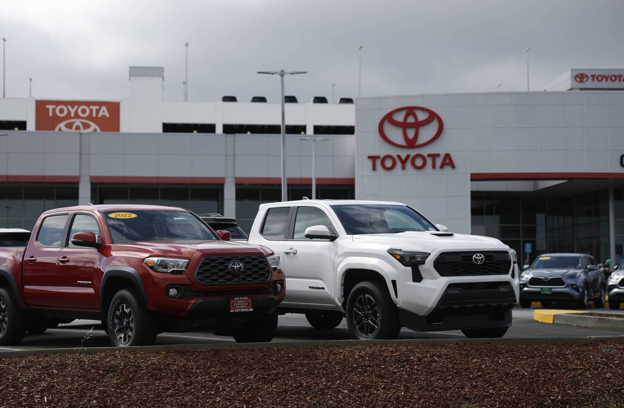 Brand new Toyota trucks are displayed on the sales lot at City Toyota on March 26, 2025, in Daly City, California. (Justin Sullivan/Getty Images)