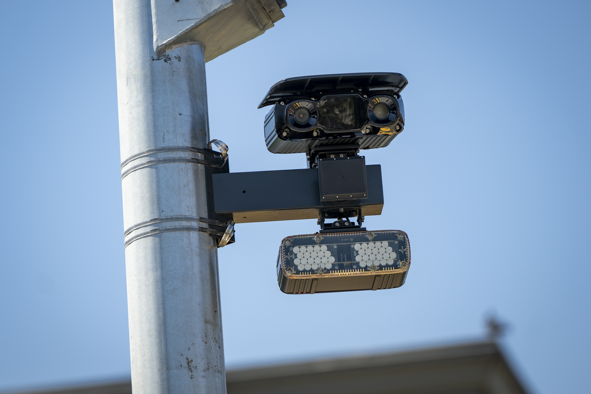 A speed camera on Alemany Boulevard monitors traffic between Farragut and Naglee avenues in San Francisco on April 28, 2026, as part of a city pilot program to reduce speeding and traffic injuries. Street safety advocates in San Francisco said a new report on the first year of automated speed cameras is proof the state needs to invest further in the program.