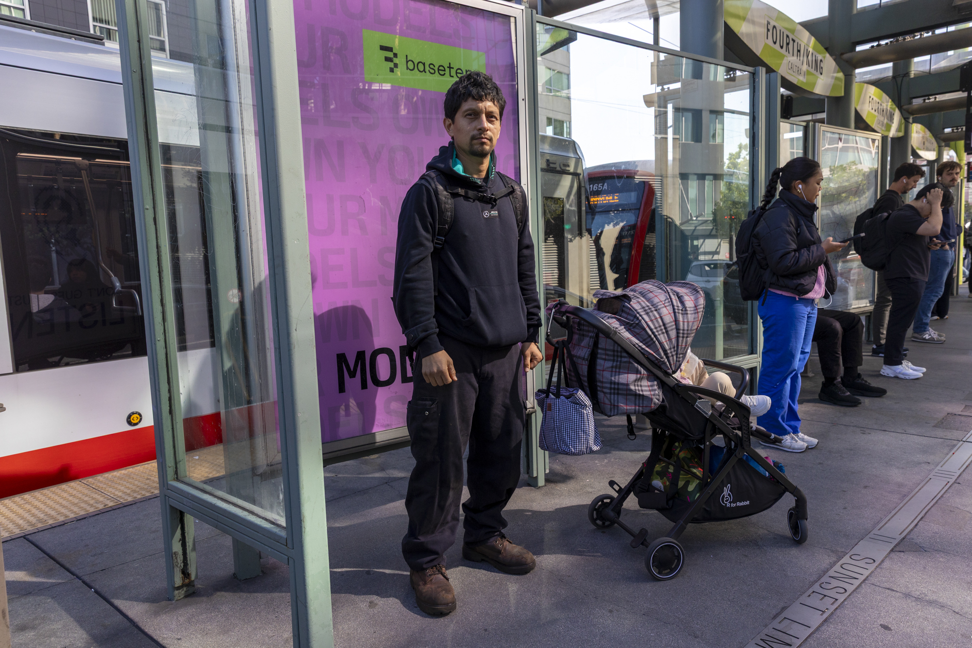 Fernando Zermeno poses for a portrait at a Muni station on King Street and Fourth Street in San Francisco on April 27, 2026. (Tâm Vũ/KQED)