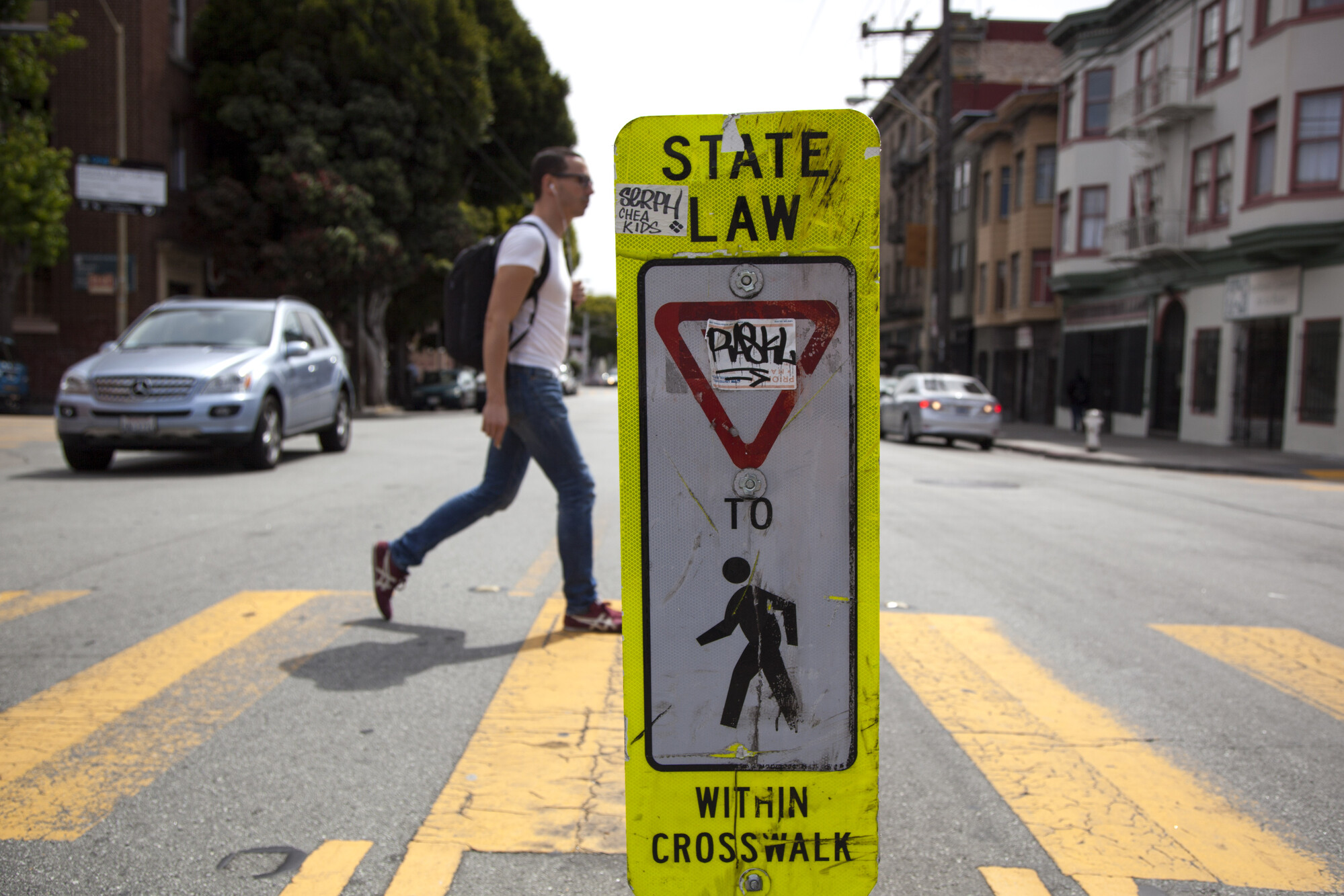 "caption": "A pedestrian crosses 16th Street in the Mission in San Francisco on May 20, 2014.",