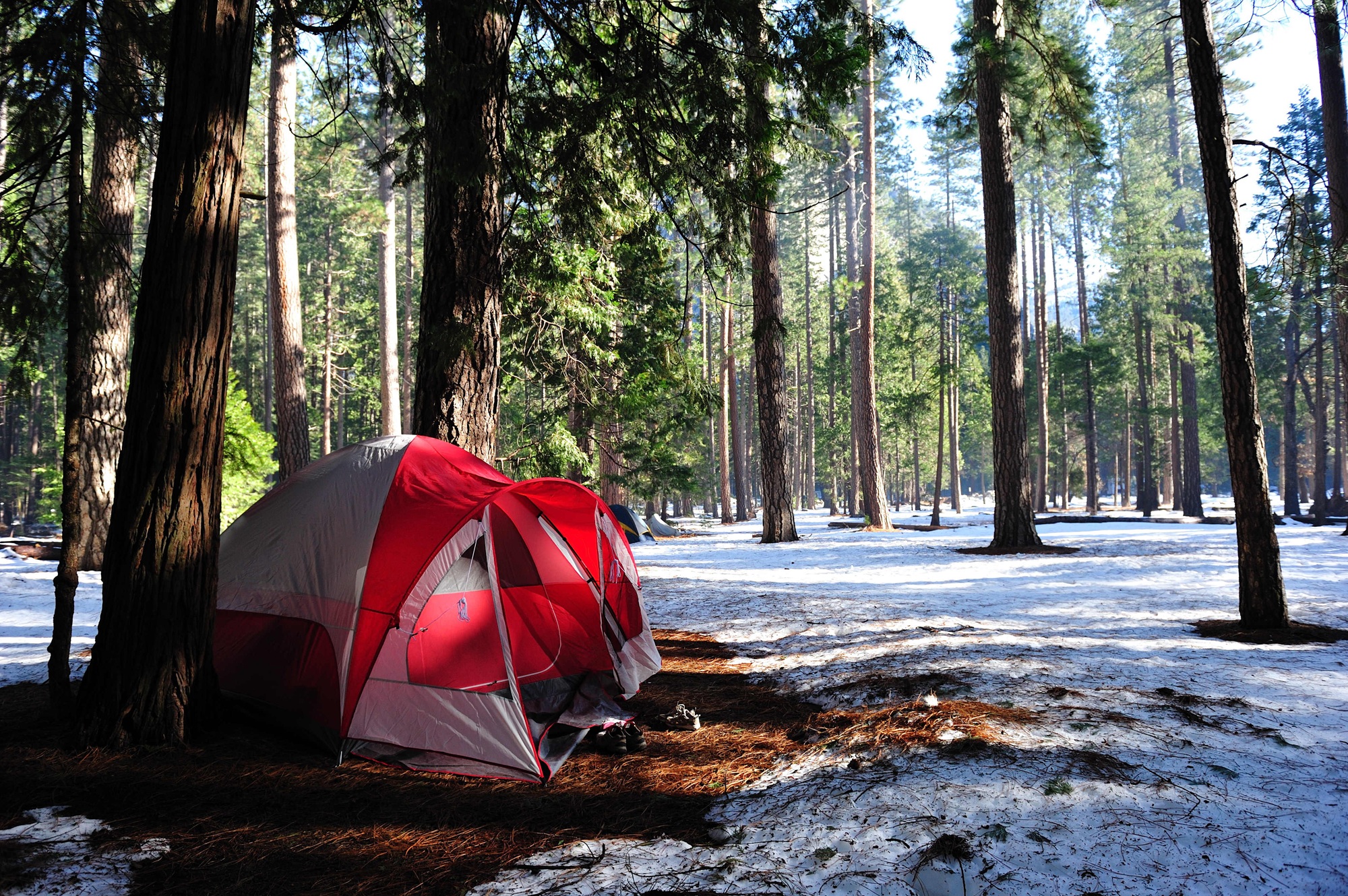 "caption": "A tent under Ponderosa Pine during winter in Yosemite, California. Whether you want actual snow or not, here are expert tips to make your cold-weather camping trip memorable — plus five great winter campgrounds.",