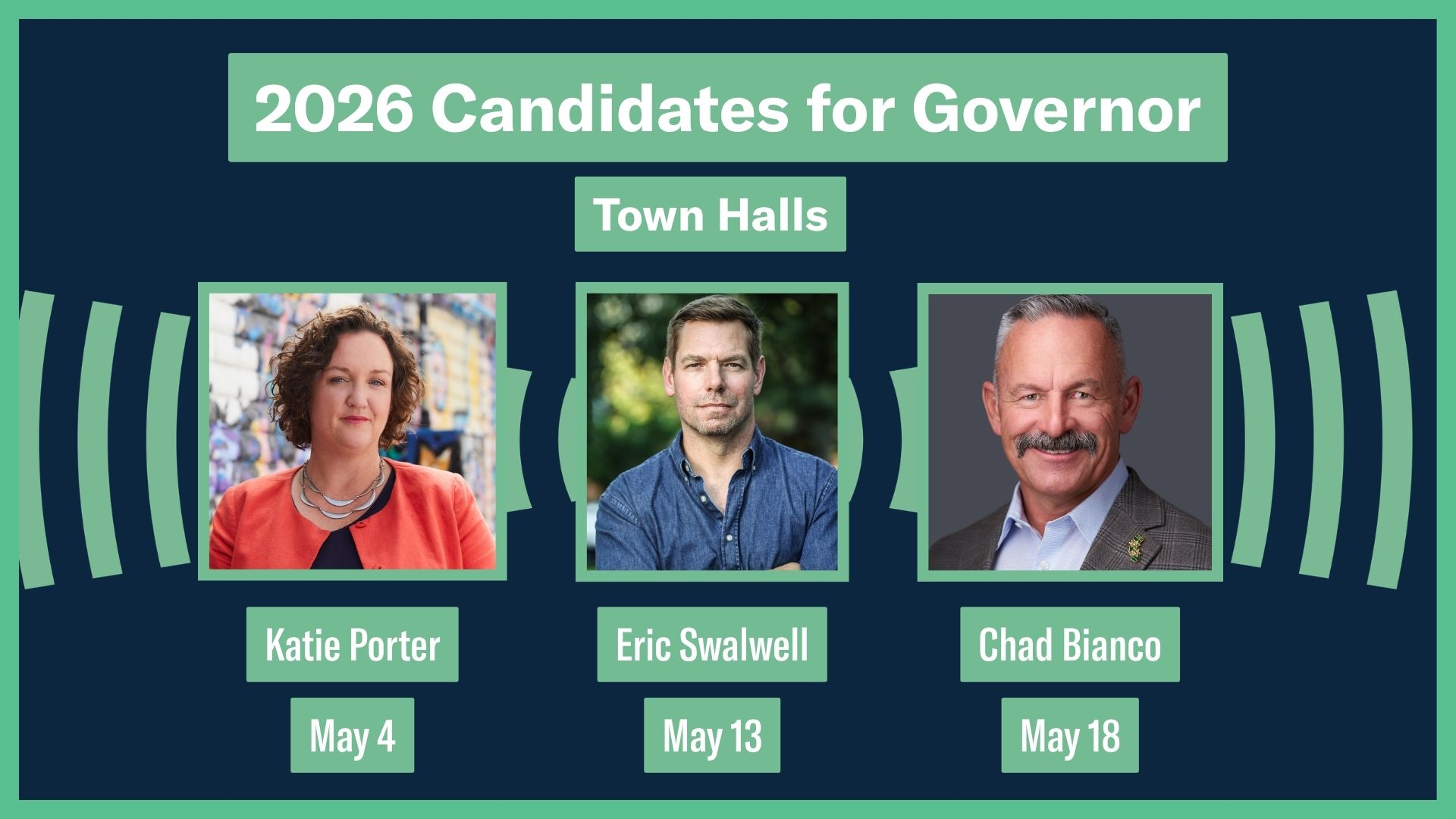 SAN FRANCISCO, CA; April 9, 2026 – In the race up to the June California primary election, KQED will be hosting a series of town hall-style conversations with three of the leading candidates to become the state’s next governor. Former U.S. Representative Katie Porter (May 4), U.S. Representative Eric Swalwell (May 13), and Sheriff Chad Bianco (May 18) will each present their visions for California’s future under their leadership, guided by questions from a live audience at KQED’s San Francisco studios.