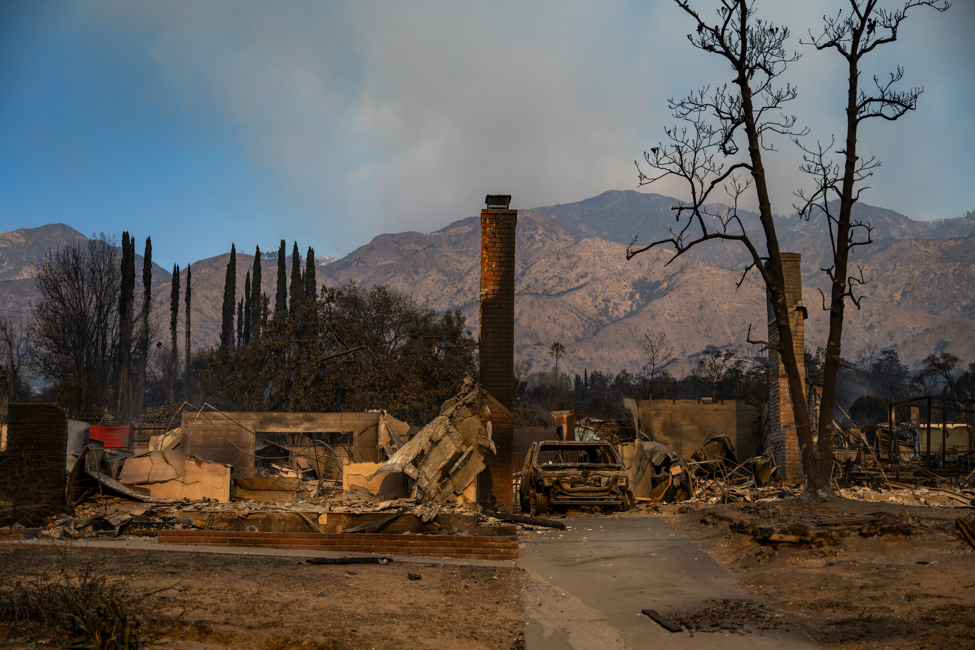 The remains of a house in Altadena, California, after the Eaton Fire swept through the area northeast of Los Angeles, California, on Jan. 9, 2025. The new laws promote wildfire safety and consumer protections, with steps that increase transparency.