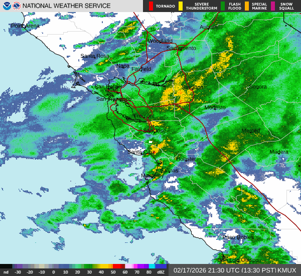 Storms pass over the San Francisco Bay Area. (Courtesy of the National Weather Service)