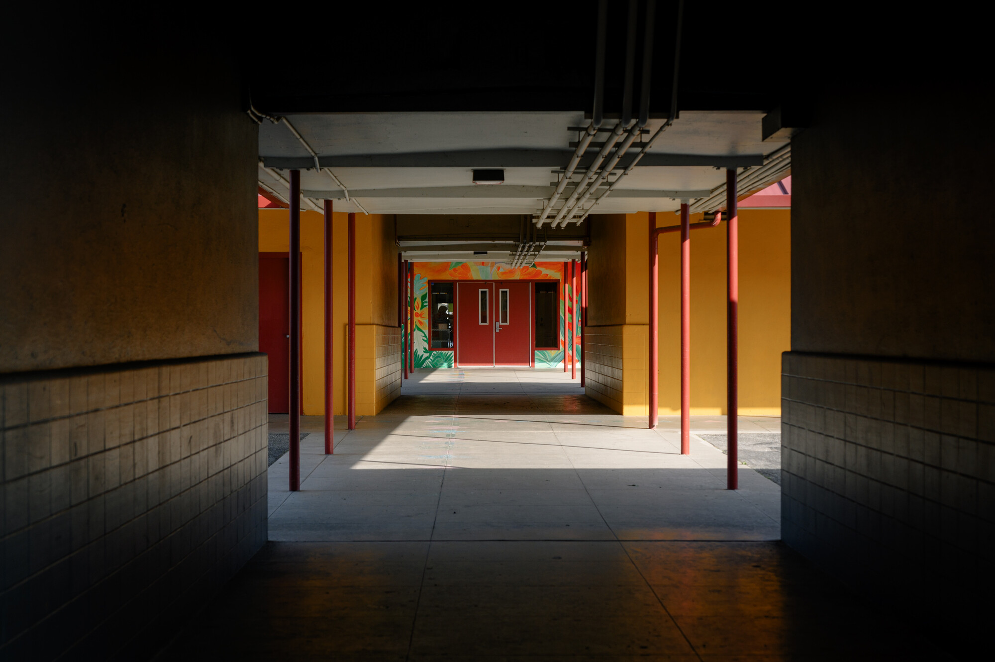 A walkway at Cesar Chavez Elementary School in East San José on Feb. 17, 2023. (Kori Suzuki/KQED)