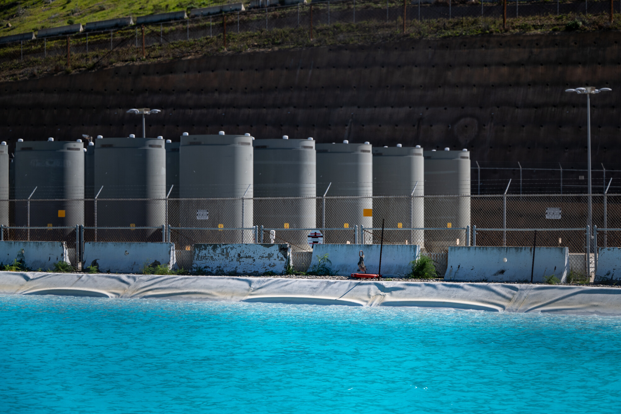 A raw water reservoir with desalinated ocean water at the Diablo Canyon Power Plant in San Luis Obispo on Feb. 13, 2026, the state’s only active nuclear power plant. (Beth LaBerge/KQED)