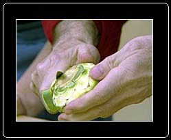 Make sure to remove all bits of the tough outer layer from the artichoke bottom. |