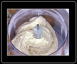 Put 1/2 c. of water, yeast, and sugar into a large food processor and process enough to mix. Set aside for 10 minutes. Add flour and salt and begin processing dough. With processor running, pour in remaining 1-1/2 c. water and process 30 seconds. |
