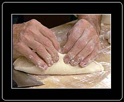 Press and extend each piece of dough into a log ~8" long, then pinch the sides together along the entire length of each log to create a seam on one side. |